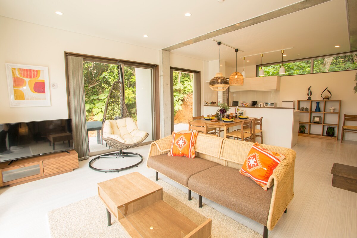 海洋疗愈屋位于冲绳恩纳村,是一栋“冬天也能欣赏海景”的独栋别墅 ⭐️ 荣获超级房东与 Guest Choice ✨全屋海景 ✨ 150㎡ 可容纳 8 人,4 个免费停车位 ,2 间浴室,适合家庭与团体入住 ⭐️ 冬季冲绳气候温和、景点人少,是安静度假的好季节 ⭐️ 挑高客厅、桌游 🎲、儿童秘密房等设施齐全,深受三代家庭喜爱。 距 Blue Cave 车程 5 分钟 🚗,步行可到咖啡馆与海滩 可在露台看夕阳 🌅、在室内享用火锅或料理 🍲、阅读或远程办公 ☕📚💻 欢迎在温暖舒适的空间度过冬日冲绳的惬意时光 ✨