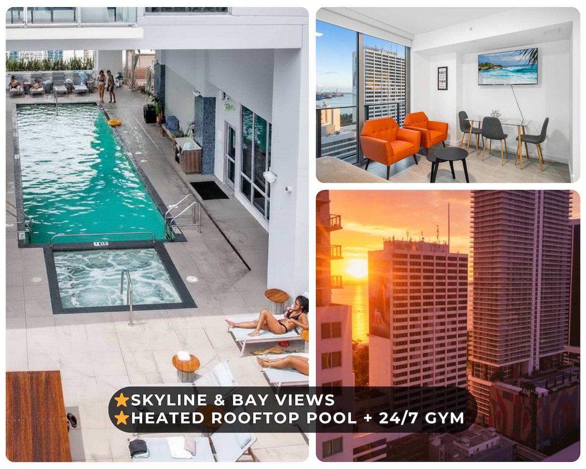 Modern Studio | Heated Rooftop Pool Skyline Views