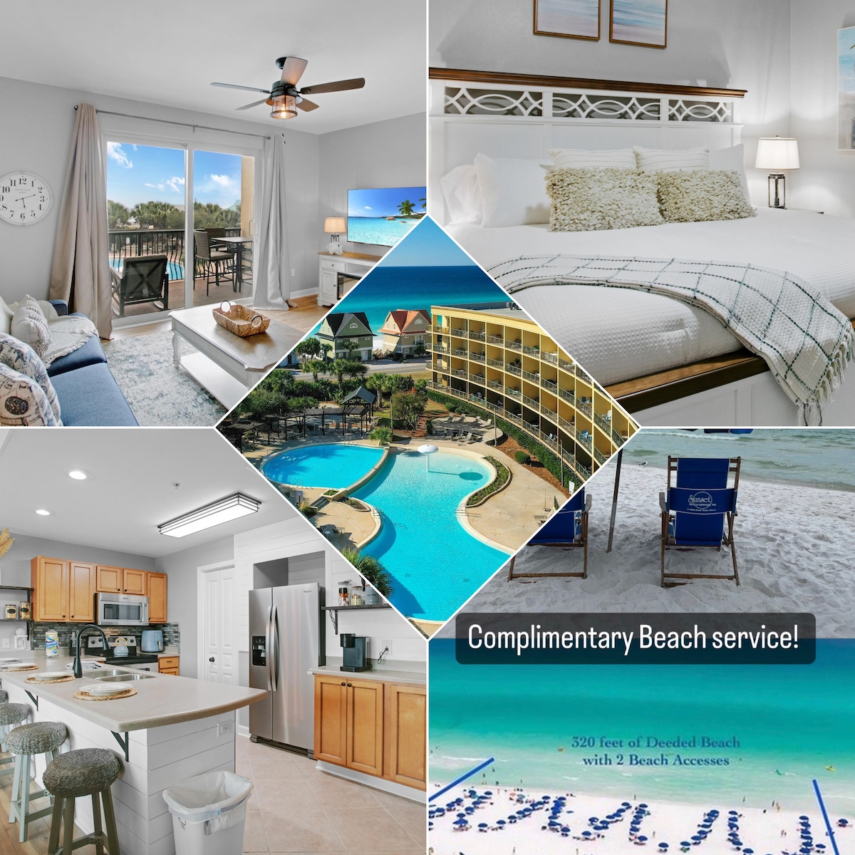 Welcome to your perfect family getaway! Our place is designed for families with young kids in mind. Our second-floor beachfront condo lets you skip long elevator waits. Enjoy the beachfront balcony with access from the master bedroom and living room. The kids will love the ship themed guest room. The complex features a gym, beautiful white beaches, pools, a water playground with a lazy river and splash pads. Alvins island is across the street. 8 Min Drive to Pier Park Book your stay today.