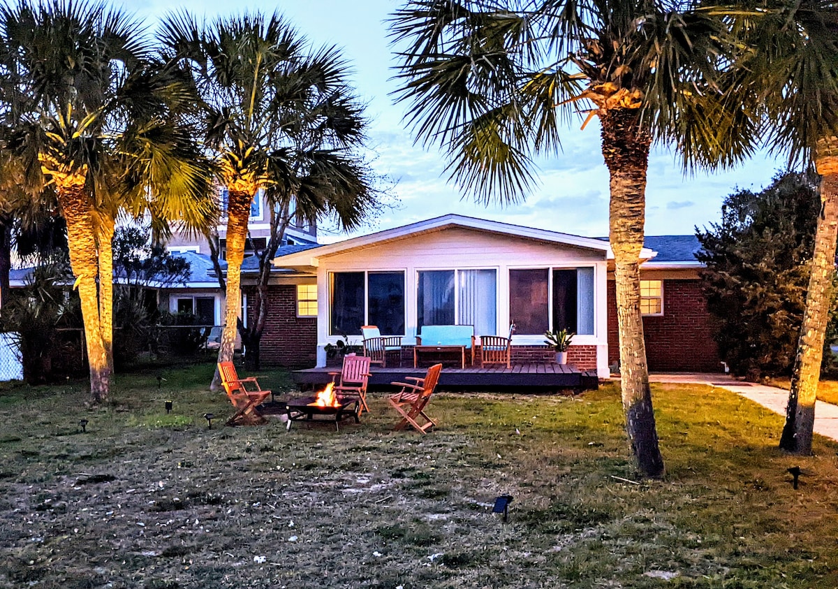 🌊 Welcome to Off The Hook ✨ Step into a newly remodeled tropical oasis just one block from the beach. This stylish retreat features a resort-style pool and hot tub, tiki hut with bar seating and TV, ping pong, darts, foosball, and a cozy fire pit for relaxed evenings under the palms. Inside, vaulted ceilings, arcade games, a poker table, and a fully stocked kitchen with pizza oven set the stage for fun. Upstairs, a serene nursery offers a crib and rocking chair for your littlest guests.