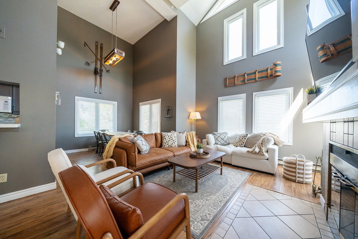 Discover the perfect mountain escape in our updated ski-in/ski-out studio, located beside the North Chair Lift. Ideal for couples or small families, it offers a custom kitchen, cozy fireplace, modern finishes, and warm chalet charm. Only 1 km to Blue Mountain Village, Scandinavian Spa, beaches, trails, and great dining, this stylish retreat delivers comfort, convenience, and unbeatable year-round adventure right at your door. Relax, recharge, and enjoy every moment in this inviting hideaway.