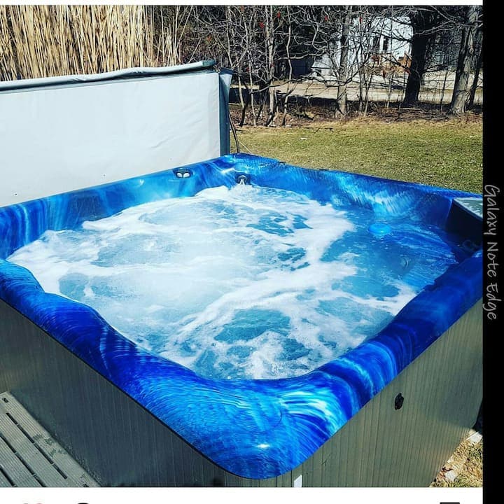 Charming riverside cottage available on Wasaga Beach. Just a 4-minute stroll from a pristine sand beach. Immerse yourself in nature's beauty while enjoying modern amenities, including a private hot tub for relaxation. Unwind with a friendly round of mini-golf or gather around the fire pit for cozy evenings under the stars.Create lasting memories at this perfect oasis that combines riverside tranquility, mini-golf fun, hot tub relaxation, and the warmth of a fire pit. Your dream getaway awaits!