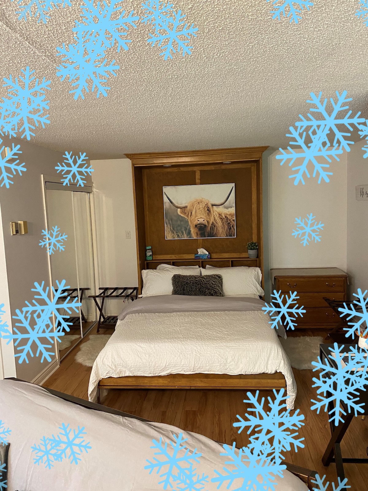 Welcome to our cozy chalet located in walking distance of Blue Mountain village. The chalet has been recently updated, including a luxurious king bed. Through winter, enjoy a relaxing evening by the fire, after a day on the slopes. In summer, enjoy time at the pool, after day on the golf course. The chalet is equipped with everything you need for a tranquil getaway. Enjoy free shuttle service to the village. STA Licence # LCSTR20220000127