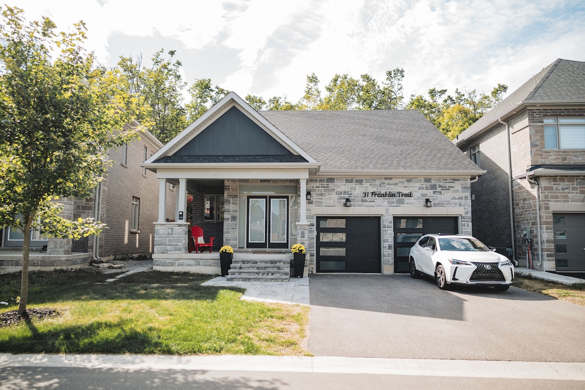 Welcome to our artist-designed country retreat! Set on 1.5 private acres, the home offers gallery-worthy décor, blazing-fast Wi-Fi and plenty of room to unwind. Inside: three serene bedrooms, fully stocked kitchen and cozy living room filled with gas fireplace and original art. Outside: BBQ, fire-pit, patio, large yard and gorgeous gardens • Superhost care & same-day responses • Free parking & washer/dryer • 10-min to trails, cafes, skiing and Georgian Bay Book your exceptional stay today!