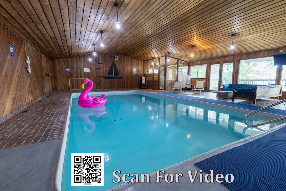 HOT TUB,SAUNA,HEATED OUTDOORS POOL, WOOD BURNING FIREPLACE ! HAVEN On BLUE is just that! This cozy charming 3 bedroom 4 season chalet is nestled in the foothills of Blue Mountain village-18 min walk & Collingwood & has everything you need for a family vacation or just a quick weekend getaway - skiing, snowboarding, summer golf trip, outdoor tennis courts -3-min walk. A stay here is sure to please even the most discerning guests. Just come & enjoy :)