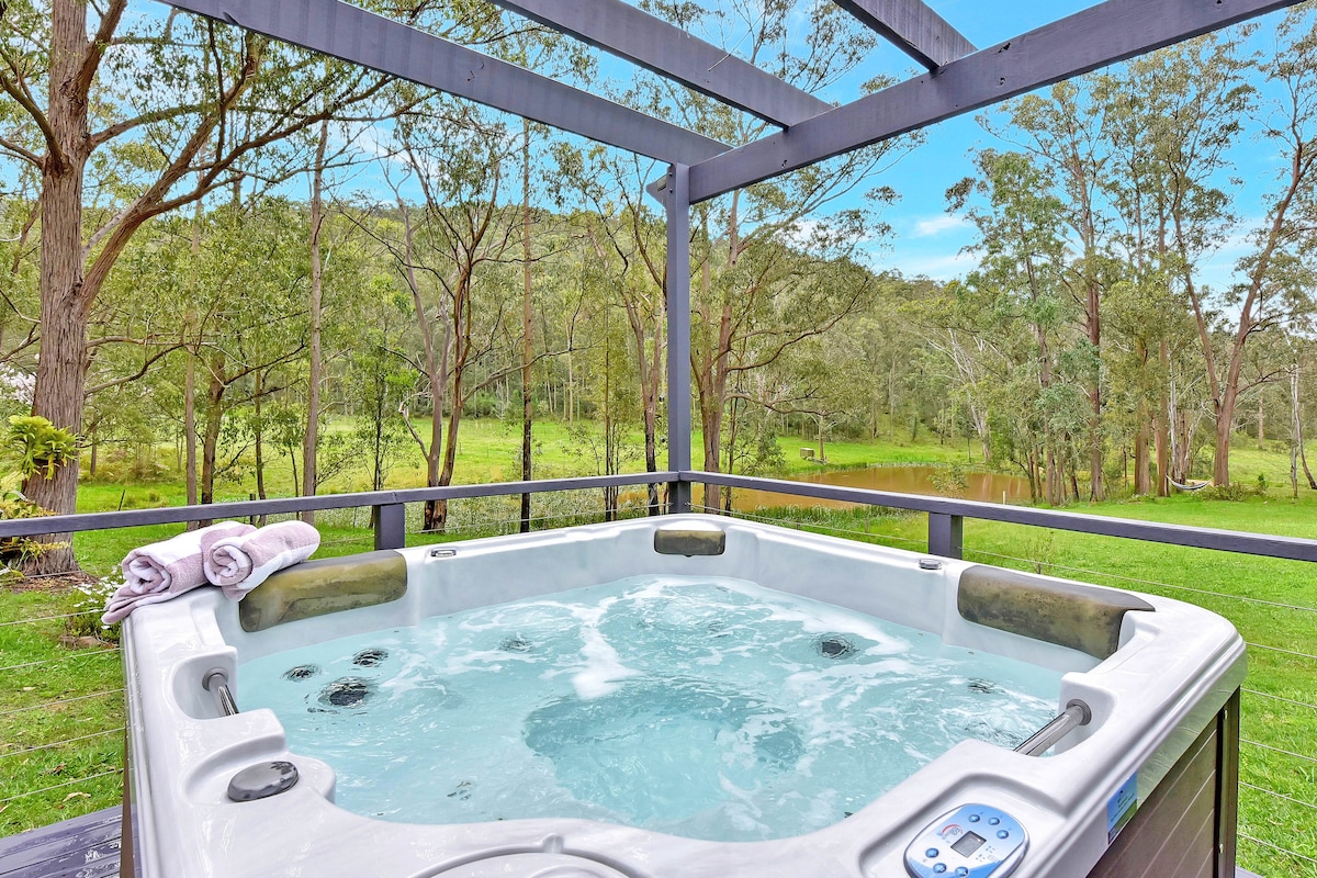 SAUNA and ICE BATH!! Wellness weekend awaits you! Enjoy the views next to the fire pit or from the hot tub, our tiny home is fully equipped to entertain and cook. Find us in the Hunter Valley Wine country on 50 stunning acres! Extremely private home property, we welcome you to relax in our very big beautiful backyard amongst the mountains! Including a pizza oven and bbq on the deck. Very relaxing and peaceful stay. Close to Hunter Valley wineries, cafes and groceries! Check out our guidebook.
