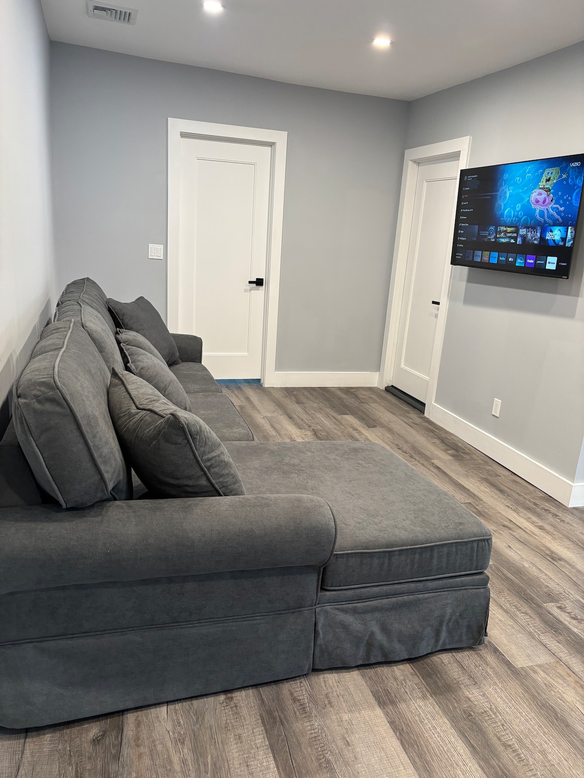 Enjoy your stay in this private, clean and comfy environment. Space offers a bedroom with a king size bed and a desk for at-home work. Living room includes a smart TV and a sectional. Unleash your inner chef! Access to kitchen utensils, dinnerware, and pots/pans. Free parking on premises. Convenient location with many necessities nearby (mall/gas station/restaurants). We are located 2 mins from I-495 and 15 mins from Macarthur airport. Great for visiting family in Port Jefferson, Patchogue, etc!