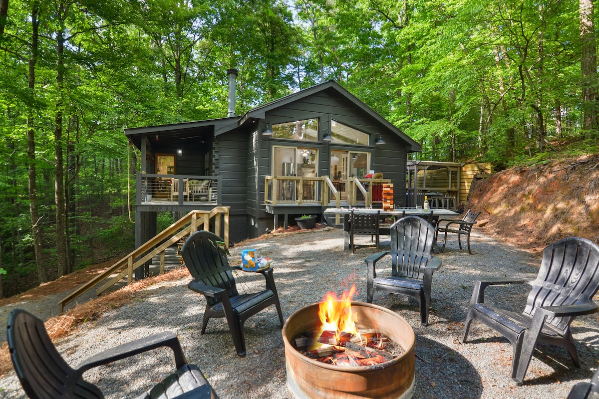 ⭐️ Dogs always stay for free! ⭐️ All breeds and sizes welcome! ⭐️ Fully fenced for small and large dogs! ⭐️ King size bedrooms! Your furry family members will enjoy 2 fenced outdoor play areas, one with fire pit, seesaw and jolly balls of all sizes. We Love Dogs and welcome all breeds and sizes. We are right off Old Highway 5, minutes from Downtown Ellijay, outdoor activities, restaurants, groceries, shopping and the annual Apple Festival.