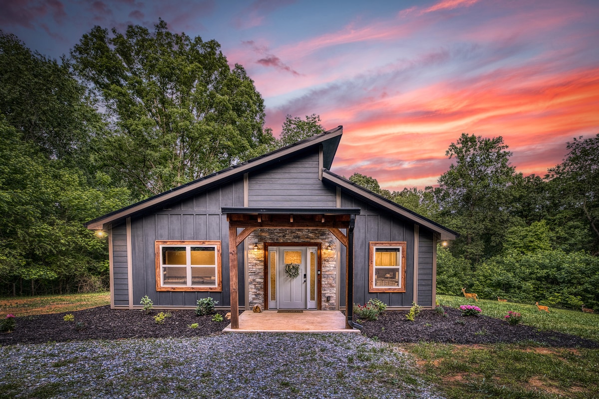 Come get away and relax at our Treehaus. Its a brand new 2 bedroom 2 bath + loft with amazing mountain views. West facing for amazing sunsets. 3 king size beds with ample room to fit a group of 6. Hot Tub, Fire pit, grill, front porch swing, and outdoor sectional. Our home has a 240 voltage outlet for your EV to plug into and plenty of parking in the driveway. All paved roads all the way to the property and only 14 minutes to downtown Blue Ridge. STR Host License Number: 001770