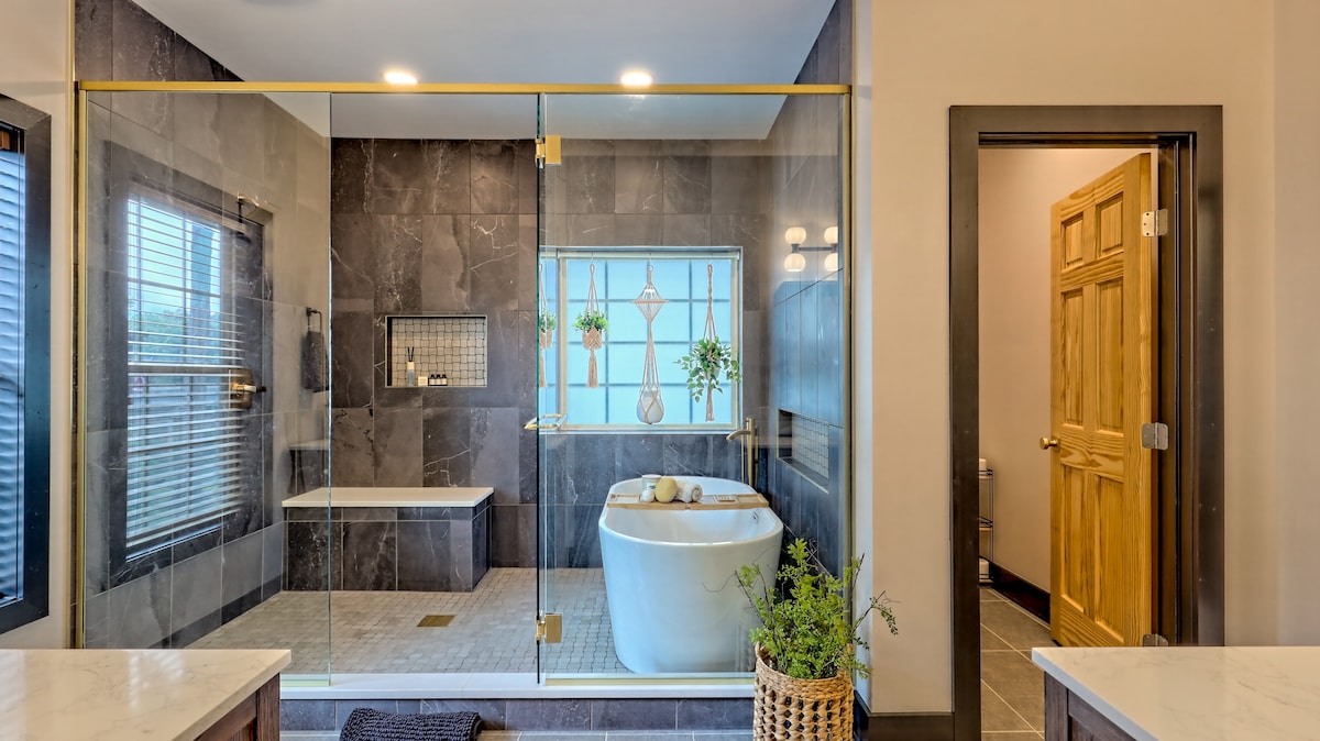 全新热水浴缸!现代房源,步行小径通往湖泊。
