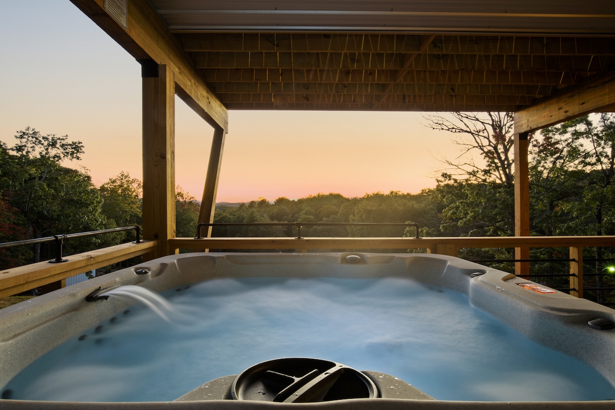 蓝岭小屋,带热水浴缸和私人湖泊!