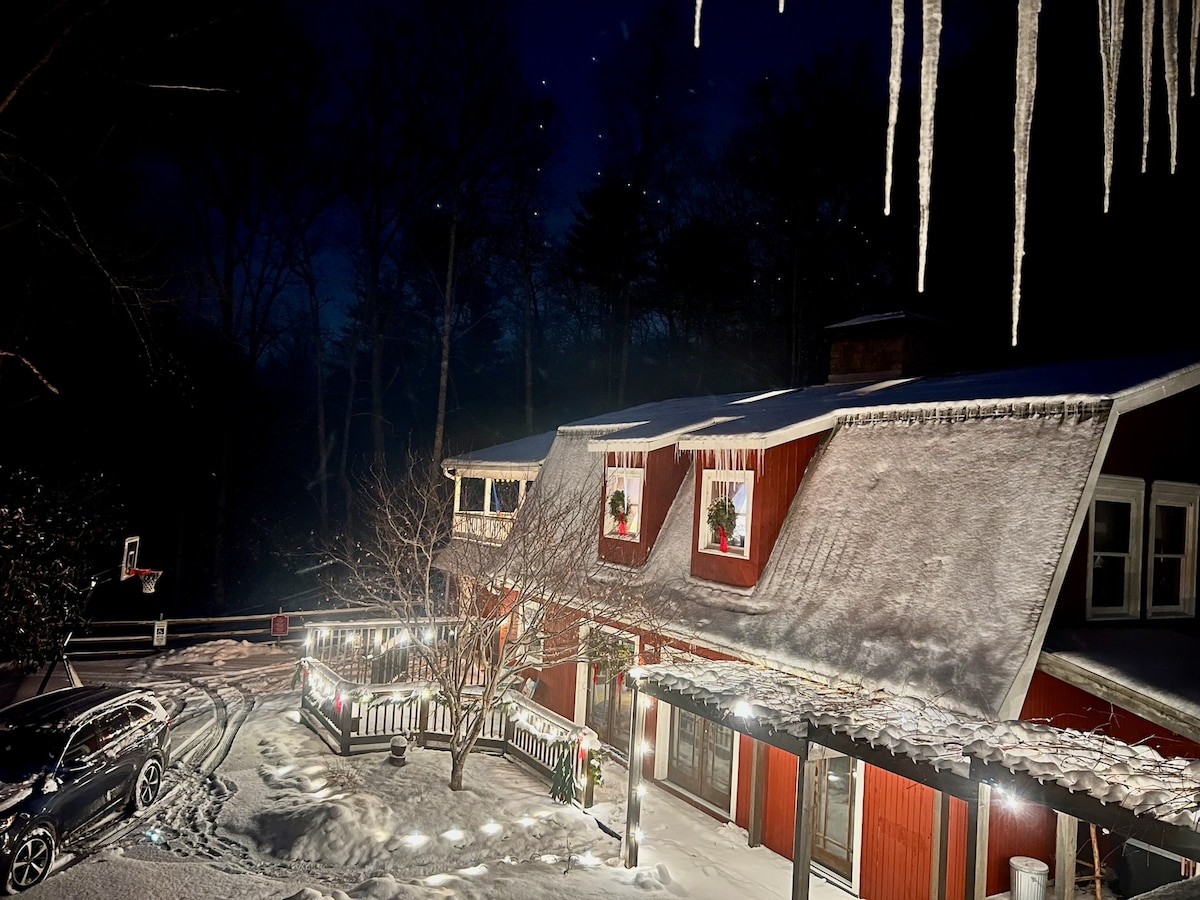 The ground floor of our charming barn retreat near Boone, Banner Elk, and Blowing Rock! Cozy up by the stone fireplace in the winter, cook in the fully equipped kitchen, and relax on the outdoor patio with forest views. Kids and adults will love exploring the property which includes access to the Watuga River. Just minutes from Boone’s vibrant shops, Banner Elk’s ski slopes, and Blowing Rock’s scenic trails, it’s the perfect base for a fun family adventure. Book today!