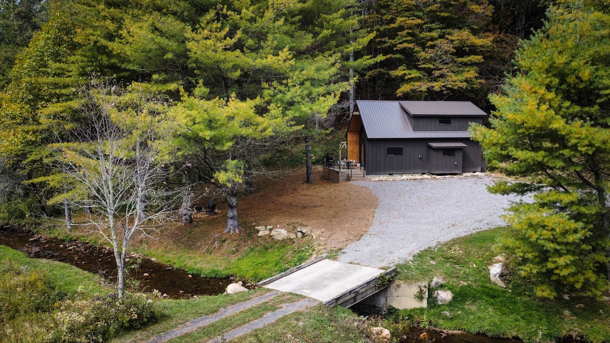 Welcome to Laurel Valley Retreat! Come enjoy 64 acres, surrounding this Scandi inspired cabin! Soak in your private hot tub, shower outdoors under the stars, and enjoy the fresh air as you hike up the mountainside or sit peacefully near the rushing creek. Toast marshmallows and spoil yourself with s'mores around the firepit. The cozy space is full of natural light and warmth with comfy furnishings inside and out. Less than 5 miles from Hatley Pointe Ski Resort (Wolf Ridge).