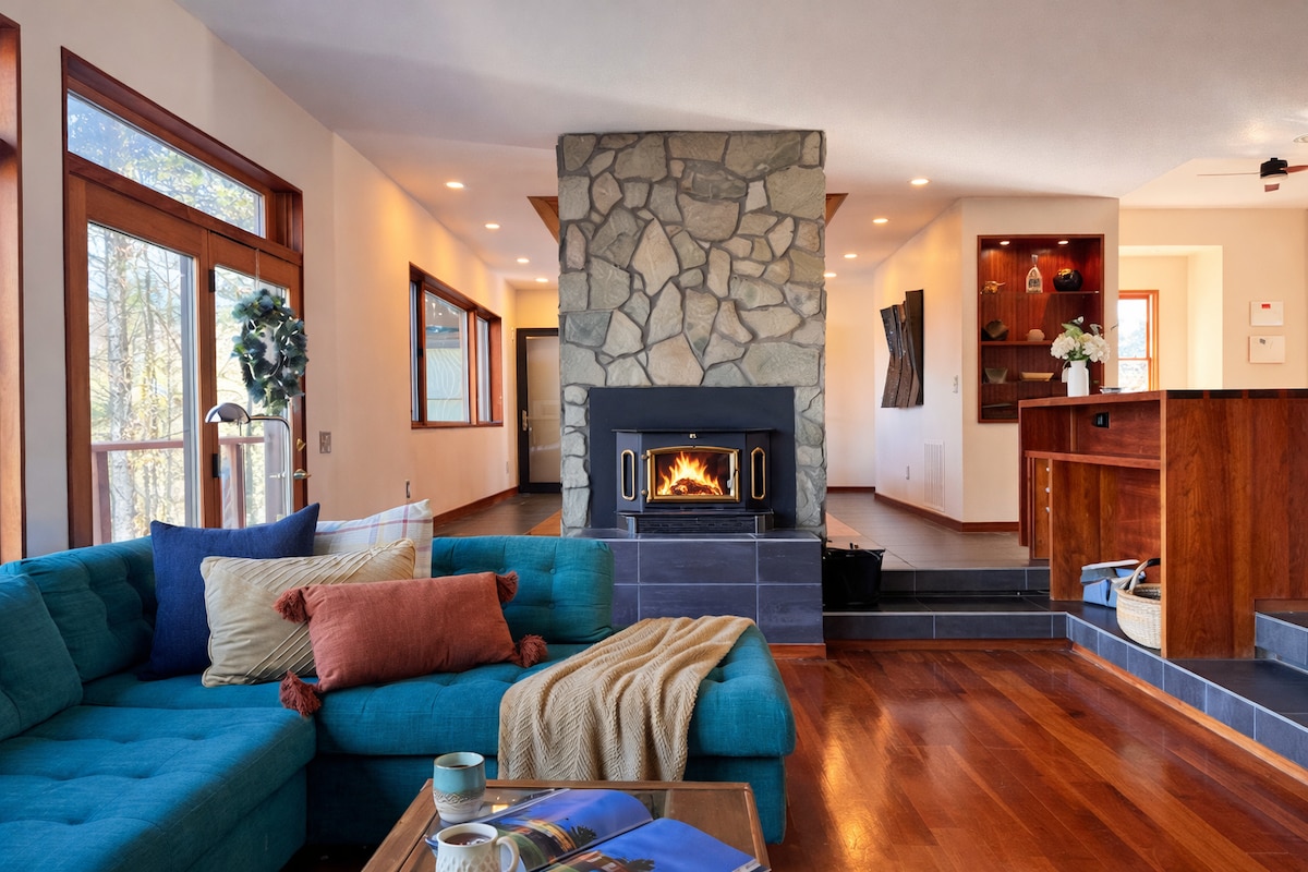 壁炉+日式浴缸+厨师厨房+宁静景观