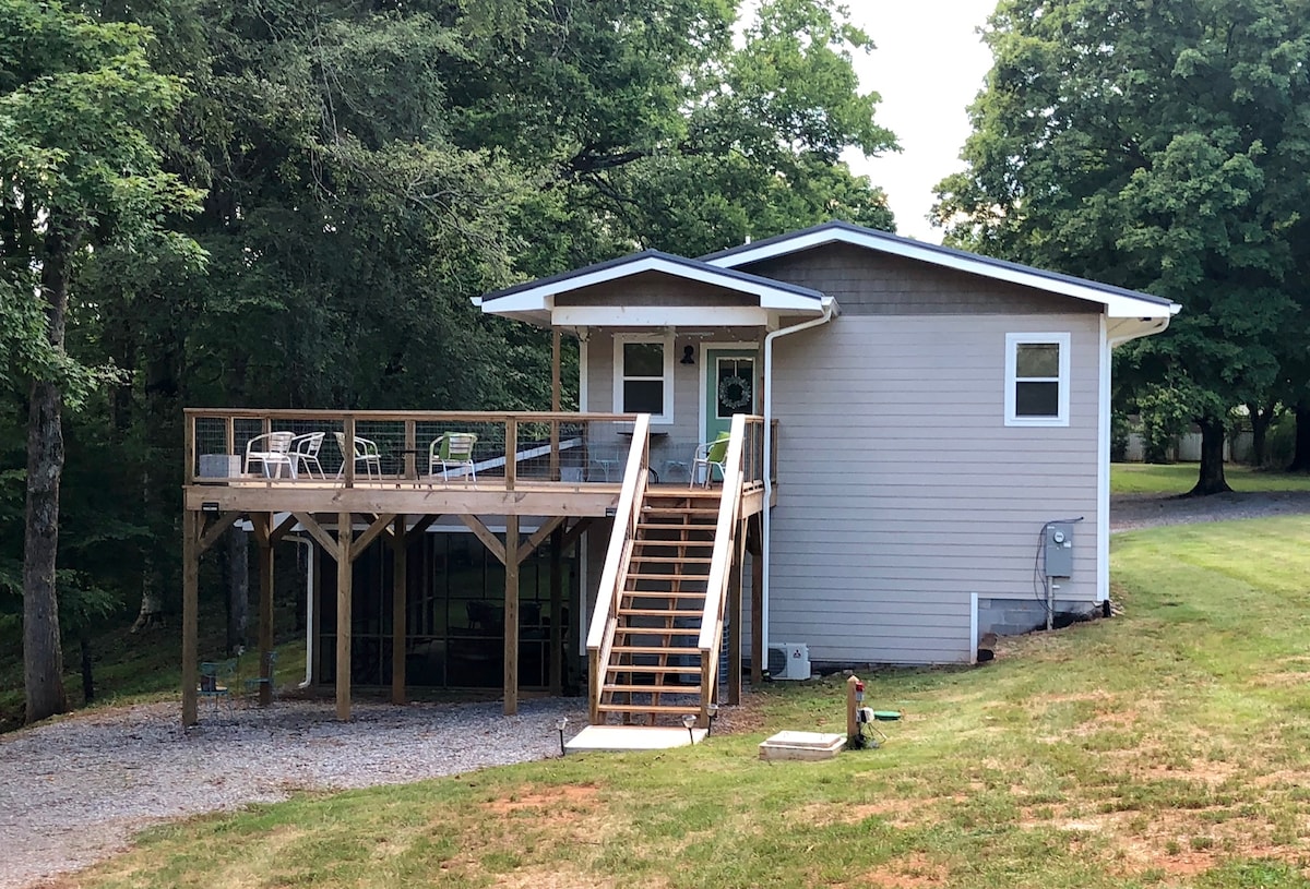 Come stay in our cozy studio apartment, where you can enjoy privacy and comfort. Beautiful Lake Junaluska can be seen after a 5 minute walk. The apartment includes an incredibly soft, custom-made bed (gel memory foam topper; king width, twin length), a night stand, a vintage dresser and two closets, an expandable table for eating or working, two chairs, and a kitchenette. The attached private bathroom completes the space. Maximum occupancy is 2. TWO NIGHT MINIMUM. NO SMOKING. NO PETS.