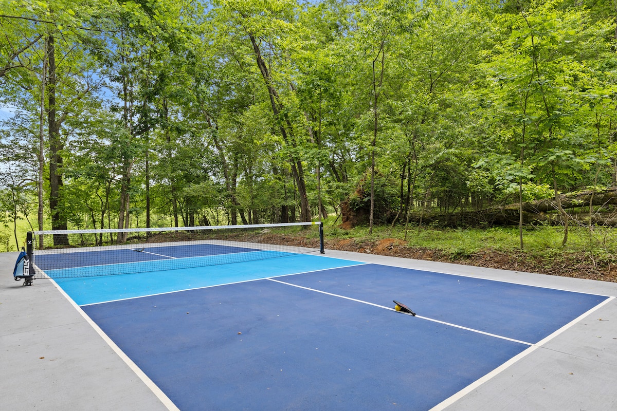 Just 7 minutes from Downtown Blue Ridge, Bramble is your mountain playground Play pickleball on your private court, sink a hole-in-one at mini golf, or unwind in the 6-person hot tub while gazing over rolling pastures with cows and horses. Cozy up by one of 3 fireplaces, enjoy an outdoor movie night, or challenge friends to pool or cornhole. With 3 spacious bedrooms, multiple gathering areas, and endless activities, Bramble is perfect for family vacations, group getaways, and romantic escapes.