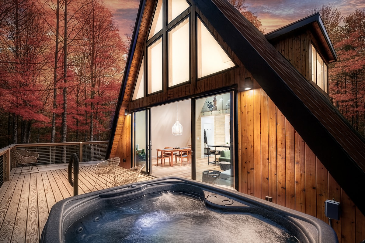 Step into the luxurious 2BR 2BA oasis - a scenic and tranquil property in the Blue Ridge Mountains. A relaxing escape with breathtaking mountain and forest views, nestled 20 minutes from the towns of Blue Ridge, McCaysville, and Murphy, with many attractions and natural beauty. ✔ 2 King Bedrooms ✔ Open Design Living ✔ Fully Equipped Kitchen ✔ Hot Tub ✔ Wood burning indoor fireplace ✔ Patio (Gas fireplace, TV, Heater, Grill, Wet bar) ✔ Sonos Audio system ✔ High Speed Wi-Fi ✔ Parking