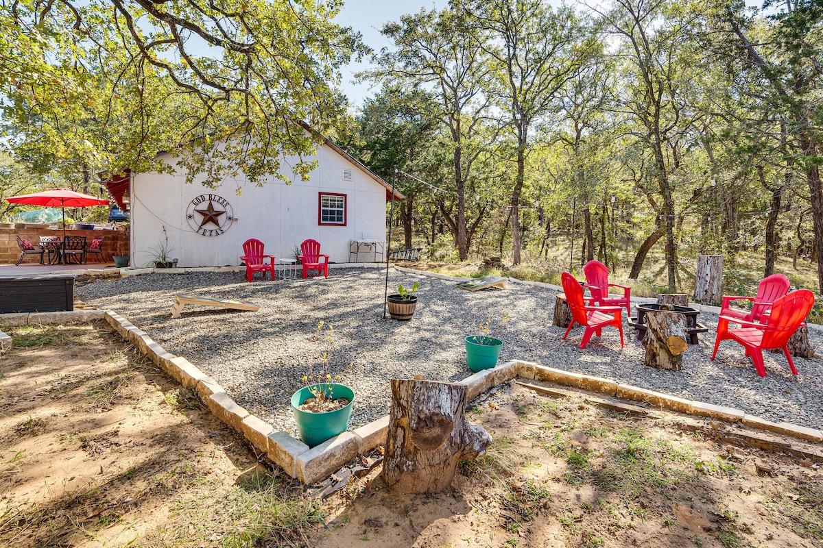 This is our weekend getaway cabin that we have made available to the public. We love spending time out at this shared property with an additional Tiny Home Airbnb, and want others to enjoy it too! The cabin has an open concept floor plan with views seen from every room! You can sit inside or out and overlook the Texas/Oklahoma countryside.