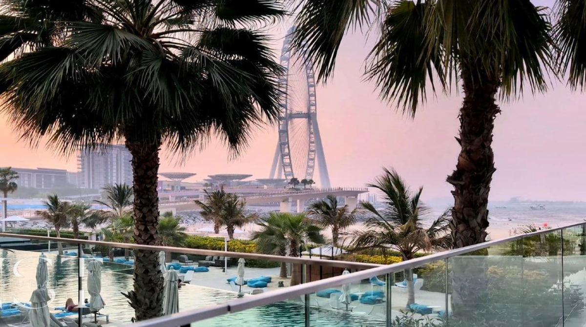Take it easy at this unique and tranquil getaway. A unique high rise luxury apartment with breath taking views of no less than five iconic Dubai Landmarks (Dubai Eye, The Atlantis, The Palm, Burj al Arab, and Jbr). Direct access to the Beach, Marina walk, Blue waters island and JBR make this location unique and the absolute best vacation location in Dubai