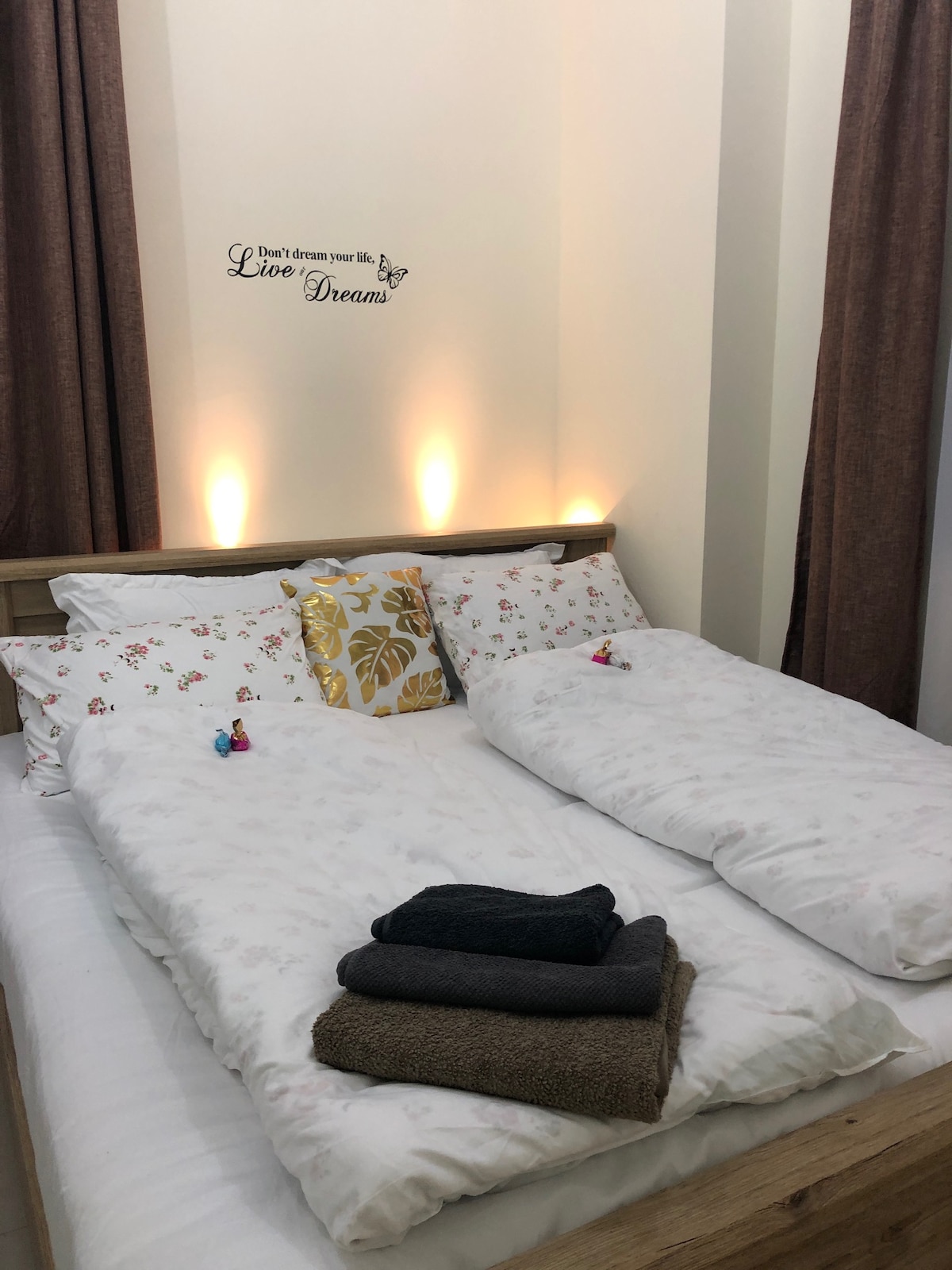This amazing FULLY-EQUIPPED 2-bedroom apartment is in the heart of Bluewaters Island, most LUXURY and expensive area. It can comfortably accommodate 5 guests. Guests have access to the community area available for the residents only, children's PLAYGROUND, BBQ area, basketball COURT, infinity swimming POOL, GYM, and private parking. There is a variety of restaurants and cafes right across the street and EYE DUBAI, which offers breathtaking VIEWS. The grocery store is within a walking distance.