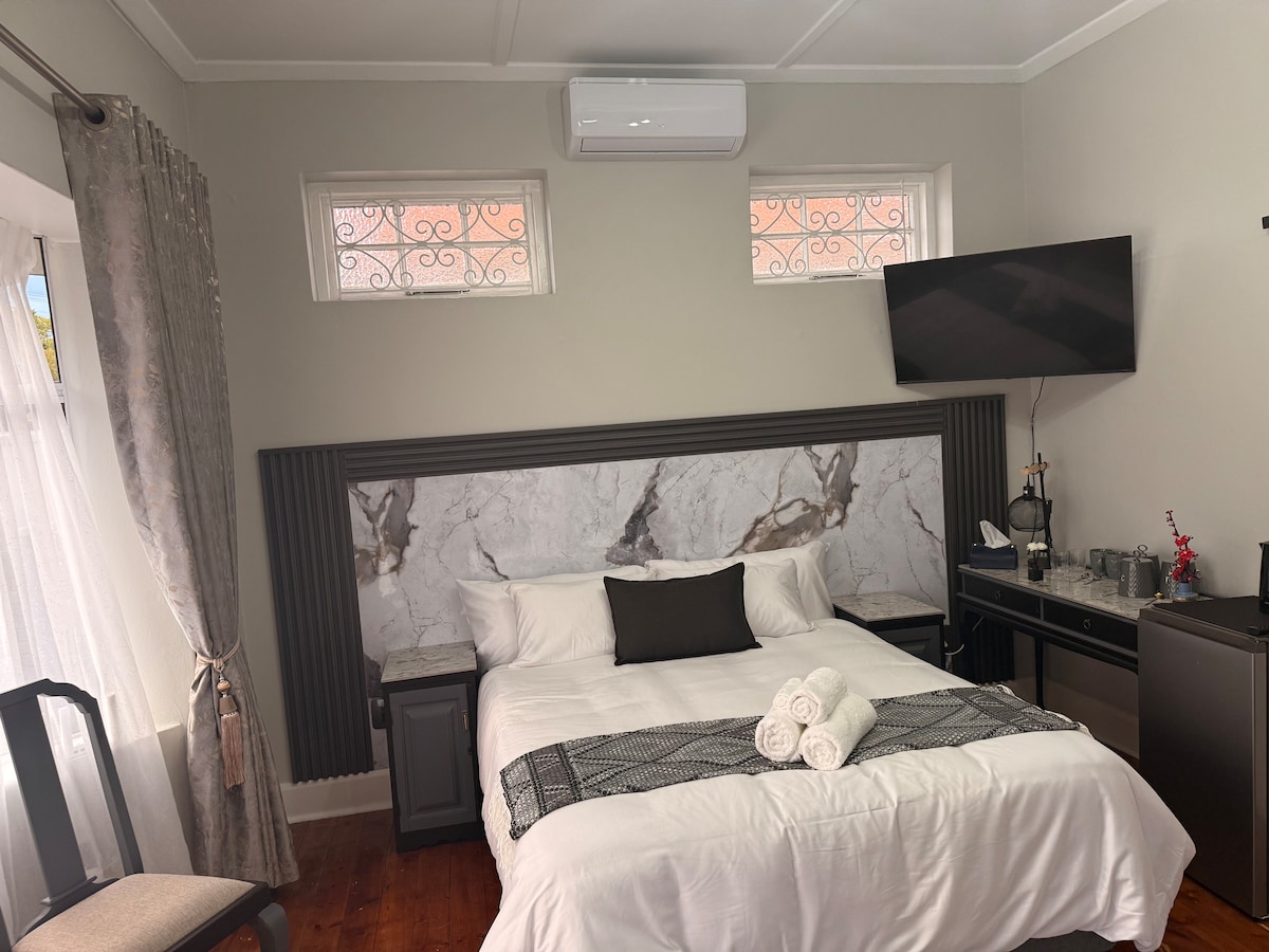 Excelent WIFI Very peaceful, private,and spacious, with a unique, beautiful large and modern "walk-in" rain shower. Full kitchen. Very central. Suitable for 2 adults. King size bed can be split into 2 singles. Self-catering Free-standing, situated in a residential area. Close to ICC, Nelson Mandela School of Medicine, Albert Luthuli Hosp, UKZN & Harbour. Open plan living room , fully fitted kitchen, gas HOB, no oven) Fibre WiFi, Netflix. Work space with 2 built-in USB charging ports.