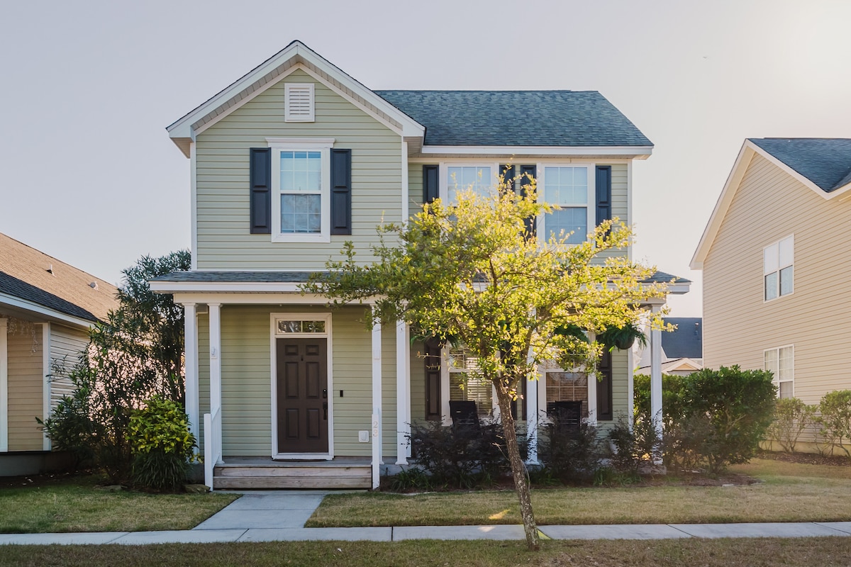 A 3 great bedroom house in Bluffton SC.Full kitchen, Spacious master bedroom, walk in closet, fire stick streaming tv, Big backyard with private fence. There is 1 kingsize bed, two queen beds. There is a propane gas grill in the backyard, a public pool is a walking distance away. The house is minutes away from Bluffton Old Town , 11 miles away from Hilton Head Island heading to the beaches.
