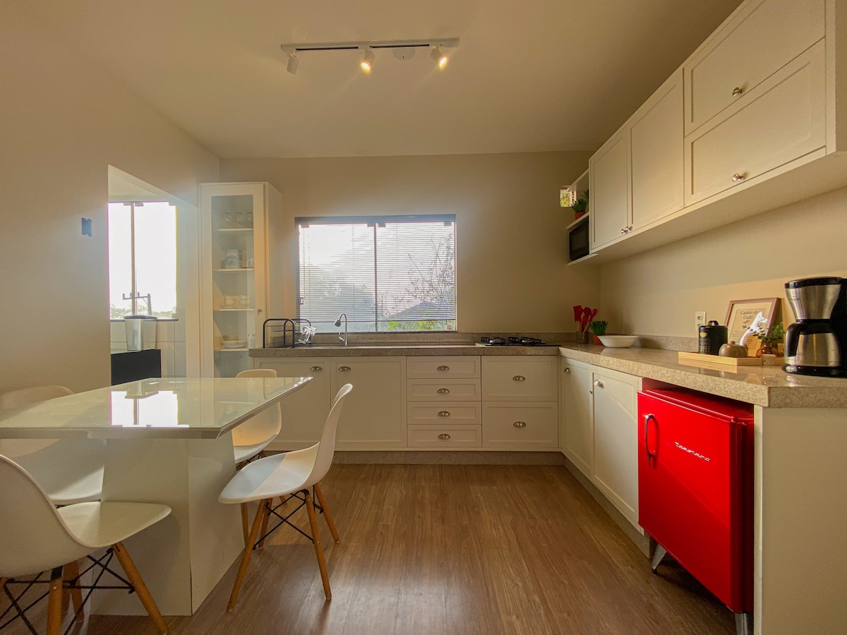 A 5min da Vila Germânica o apto proporciona uma experiência incrível de hospedagem para famílias e executivos que desejam conforto e tranquilidade. A 50m de padaria e conveniência e a 1km de supermercado, farmácia e restaurantes. Portas de vidro duplo com excelente conforto acústico e jardim de inverno na sala. Ar condicionado split em todos os ambientes! . Cafeteira elétrica, Airfry, sanduicheira, microondas, forno, taças de vinho e espumante. Tv 43” com Alexa, Netflix e Amazon prime
