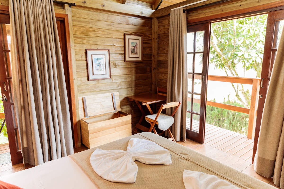 Suíte com varandão e chuveiro, com vista para magnífica área verde de mata Atlântica e também vista para a cidade. Casa localizada no final de rua sem saída, em ambiente bucólico e acolhedor. Próximo à Universidade Católica, e perto do acesso para a Rota das Cachoeiras de Corupá. 2km da Arena Jaraguá.