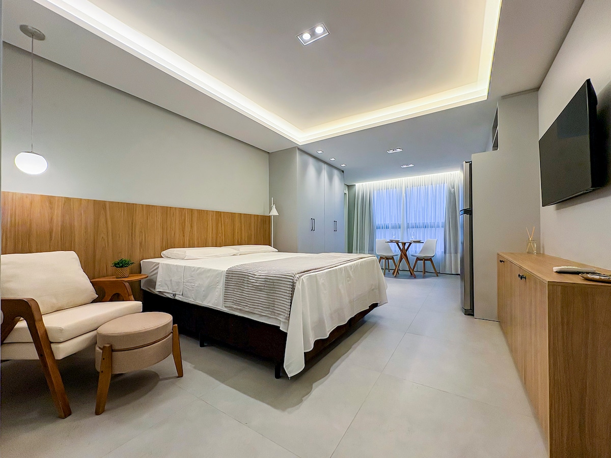 Loft 2P,带停车位和游泳池,距离Vila Germânica 300米