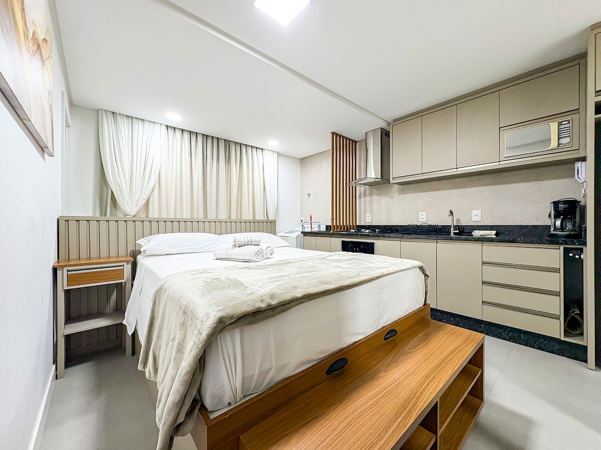 O seu refúgio exclusivo ao lado da Vila Germânica Venha viver momentos únicos em um loft moderno e aconchegante, com garagem privativa. Ideal para quem busca conforto, praticidade e funcionalidade, em uma localização privilegiada (vila germânica, mercados, Mc Donalds, restaurantes, e muito mais) Estrutura do prédio: você terá acesso a uma piscina incrível, academia, lavanderia, horta comunitária, além de um espaço de coworking perfeito para quem precisa conciliar viagem e trabalho.