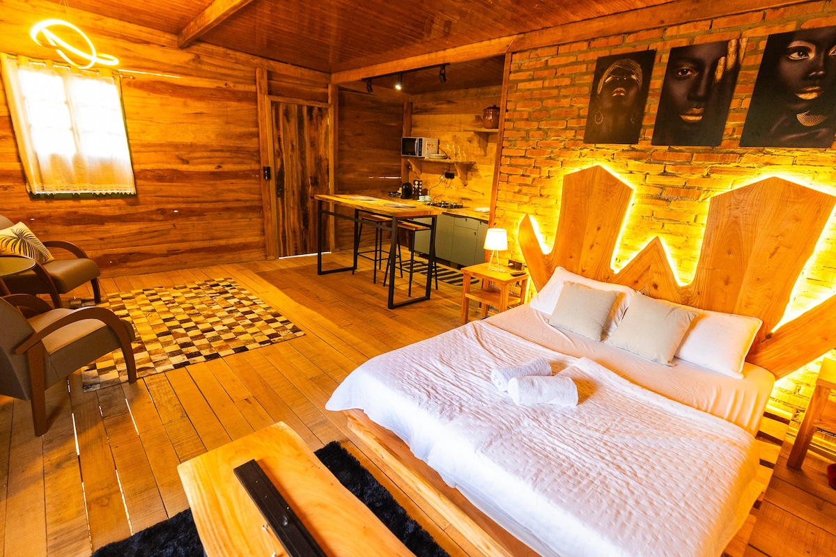 A Cabana Do IPê é maravilhosa para casais que buscam tranquilidade e bem estar em meio a natureza e aos animais Pra melhor receber nosso hóspedes oferecemos água e café expresso, wi-fi, TV Smart,ar condicionado e lareira. Também contamos com a parceira de restaurantes e food Truck, aonde pode ser solicitado lanches, almoços e jantares. * Cesta de café e espumante, tambem pode ser solicitado a parte. A Cabana fica apenas 15 minutos do Centro de Pomerode e a 15 minutos do centro de Blumenau.