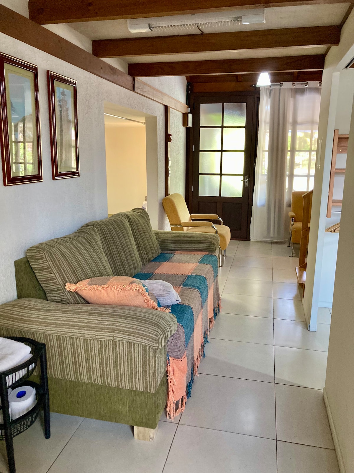Quarto|sala em ambiente com banheiro privativo sem necessidade de contato com os residentes. Ideal para casal, podendo trazer crianças desde que durmam em colchão ou sofá cama. Bairro residencial, à 5 km da Vila Germânica. Área externa com bosque, amplo gramado. Com Garagem. Na Oktoberfest podemos atender até 6 pessoas com colchões.