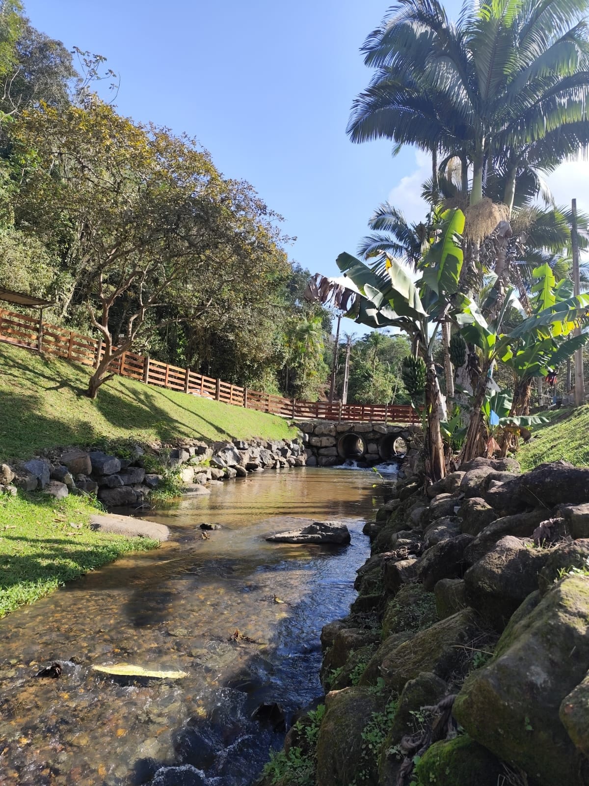 Hospede-se numa das mais belas paisagens de Pomerode, em uma casa enxaimel restaurada com todo o conforto, junto ao riacho e às montanhas, com silêncio e muita natureza. Acomoda confortavelmente seis pessoas, com possibilidade de comportar mais hóspedes. A casa é alugada inteiramente, para assegurar sua privacidade. Ar-condicionado nos quartos, banheiro com água quente, wifi, cozinha equipada e outras comodidades. Também oferecemos a opção de pesque e pague ou pesca esportiva aos hóspedes.