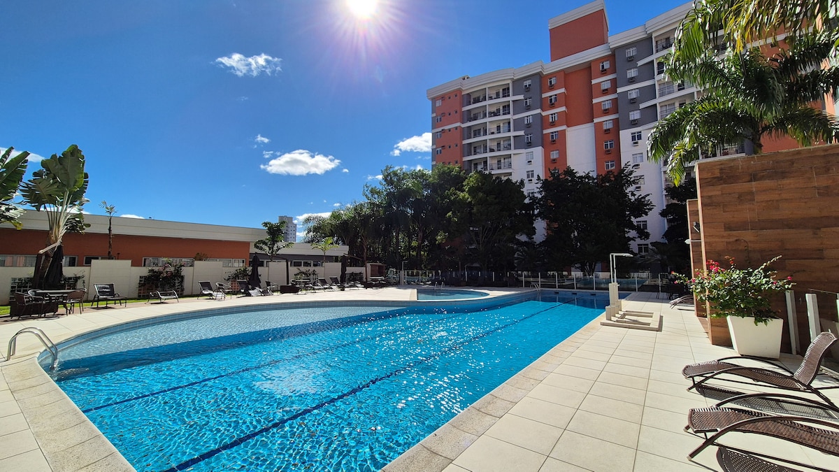 Conheça Blumenau e hospede-se em nosso espaço aconchegante ! Localização privilegiada ao lado do PARK VILA GERMÂNICA, próximo da universidade FURB, padarias, restaurantes e mercados; Equipado com cozinha, ar-condicionado, TV Smart, Wi-Fi e garagem privativa, imóvel está situado em um prédio com Piscina de Borda Infinita, Espaço Fitness, Sala de Jogos, Área de Lazer e Mercadinho; Uma opção de bom gosto para quem visita a linda cidade de Blumenau.