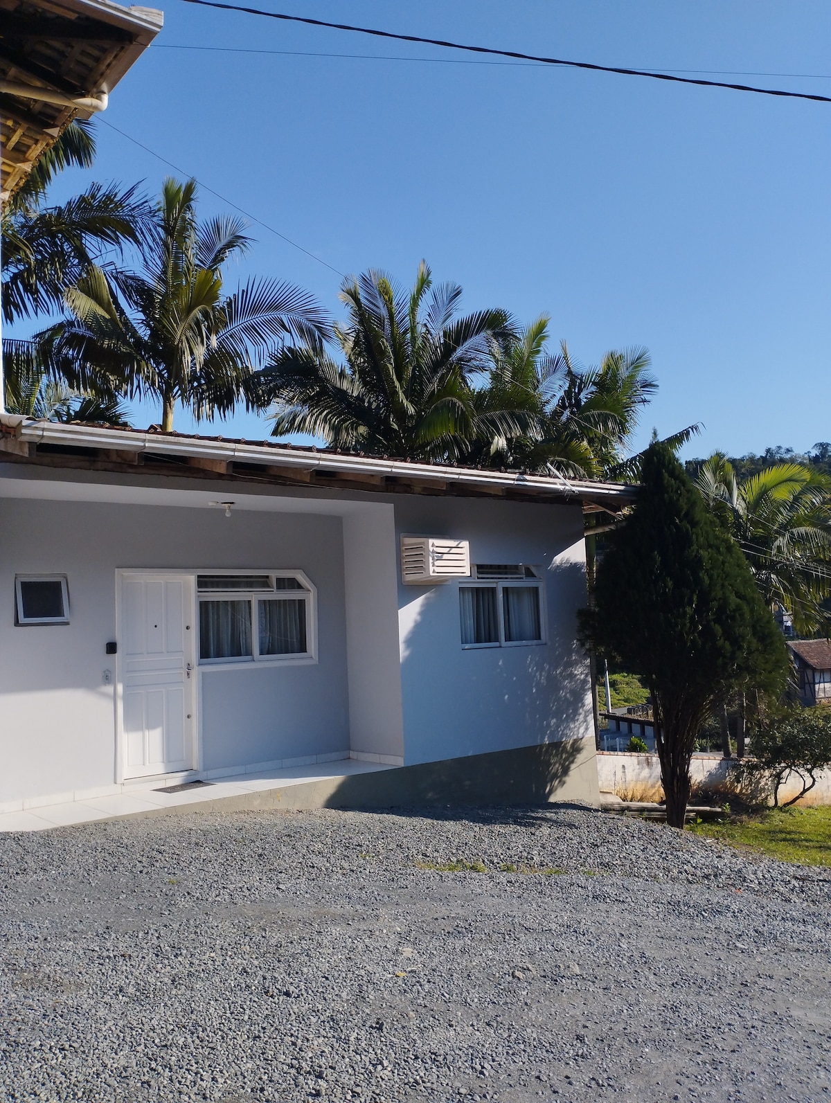 Ótima cozinha. Wi-fi. Distante à 1,3km da Vila Germânica -Oktoberfest, possui uma cama Box queen ou duas camas de solteiro Box, tv smart, ar condicionado Split, rua sem saída, local calmo. Próximo de farmácia, padaria, pizzaria, supermercado. ambiente familiar. Roupa de cama, travesseiros, cobertor, toalhas de banho e rosto. Cozinha com panelas, cafeteira elétrica, fogão, microondas, geladeira, louças e talheres. Máquina lavar roupa.