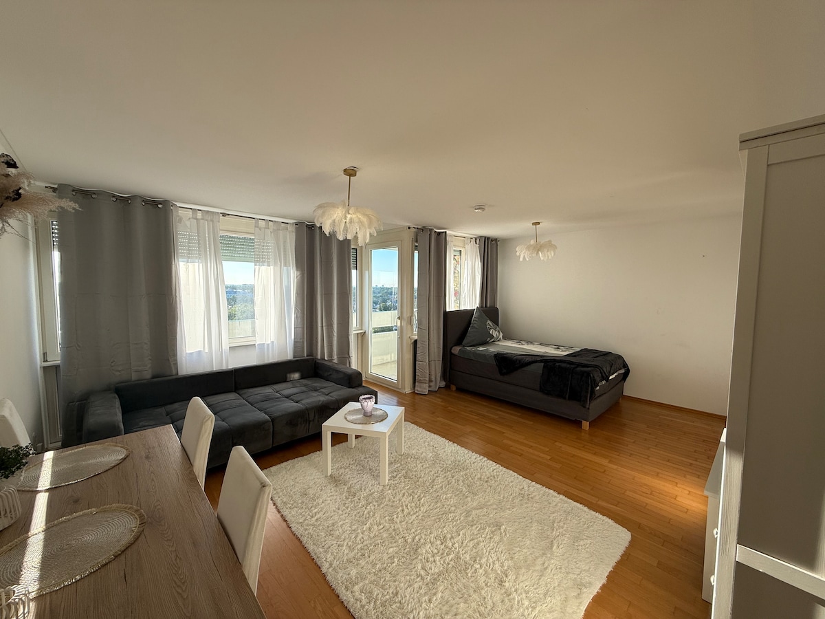 Genieße ein stilvolles Erlebnis in dieser zentral gelegenen Unterkunft. U6 sowie diverse Busverbindungen direkt vor der Haustür direktverbindung zu Theresienwiese mit der U6 ein Zimmerwohnung. Separate Küche separates Badezimmer. Es können zwei Personen auf das Bett schlafen und mindestens eine auf der Couch. Die Wohnung liegt im 9. Stock. Sie werden eine wunderschöne Aussicht haben .