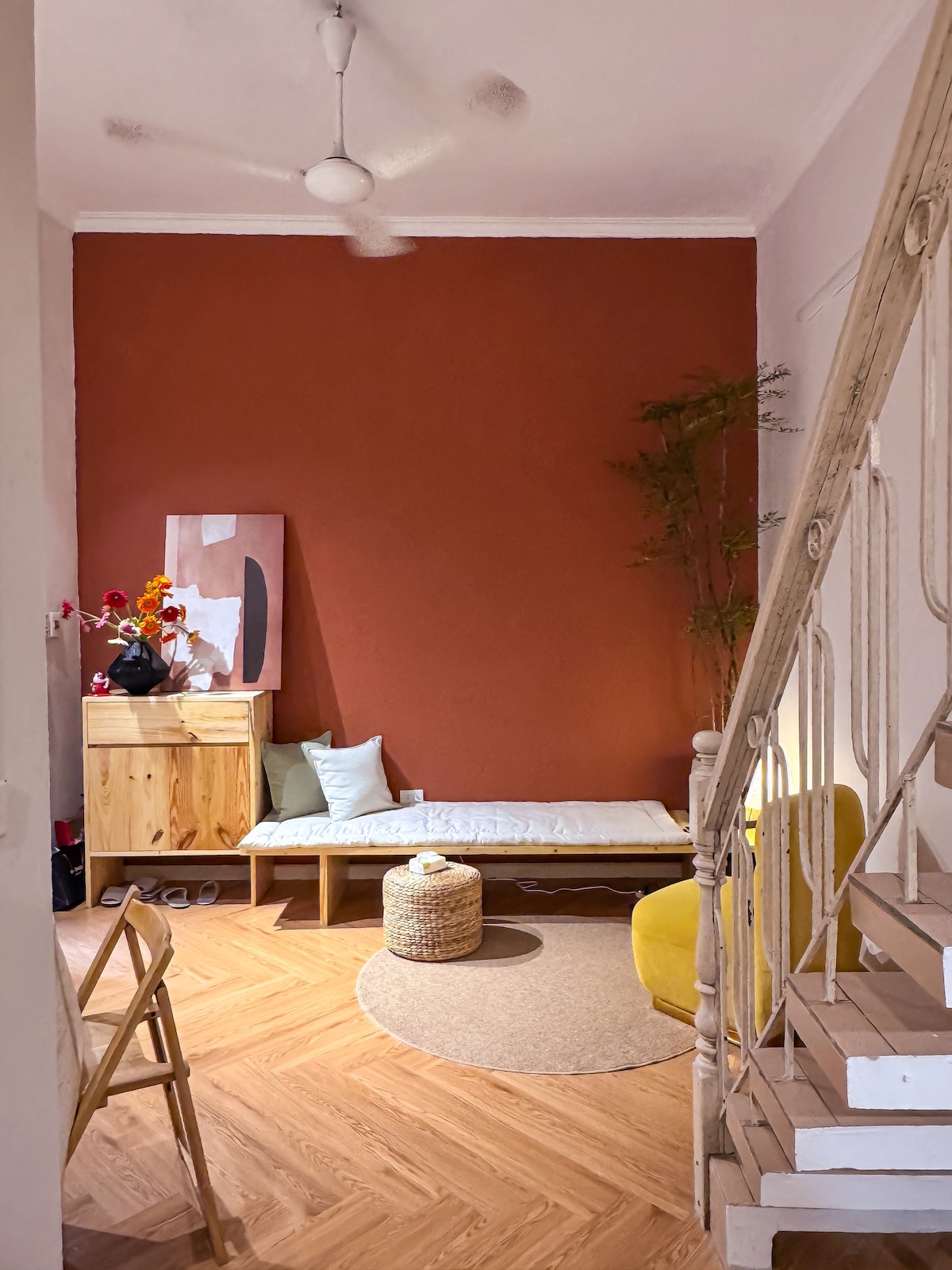 A hidden gem in the heart of Hoan Kiem District, where you can rest and unwind after exploring the bustling Old Quarter. Our space offers the warm feeling of home, right here in beautiful Vietnam. Located on a lively street with local eateries, cozy cafés, and Vietnamese fashion boutiques, yet still a peaceful and quiet retreat. The house is filled with natural light thanks to three open sides, and features a spacious balcony where you can relax or enjoy a smoke.