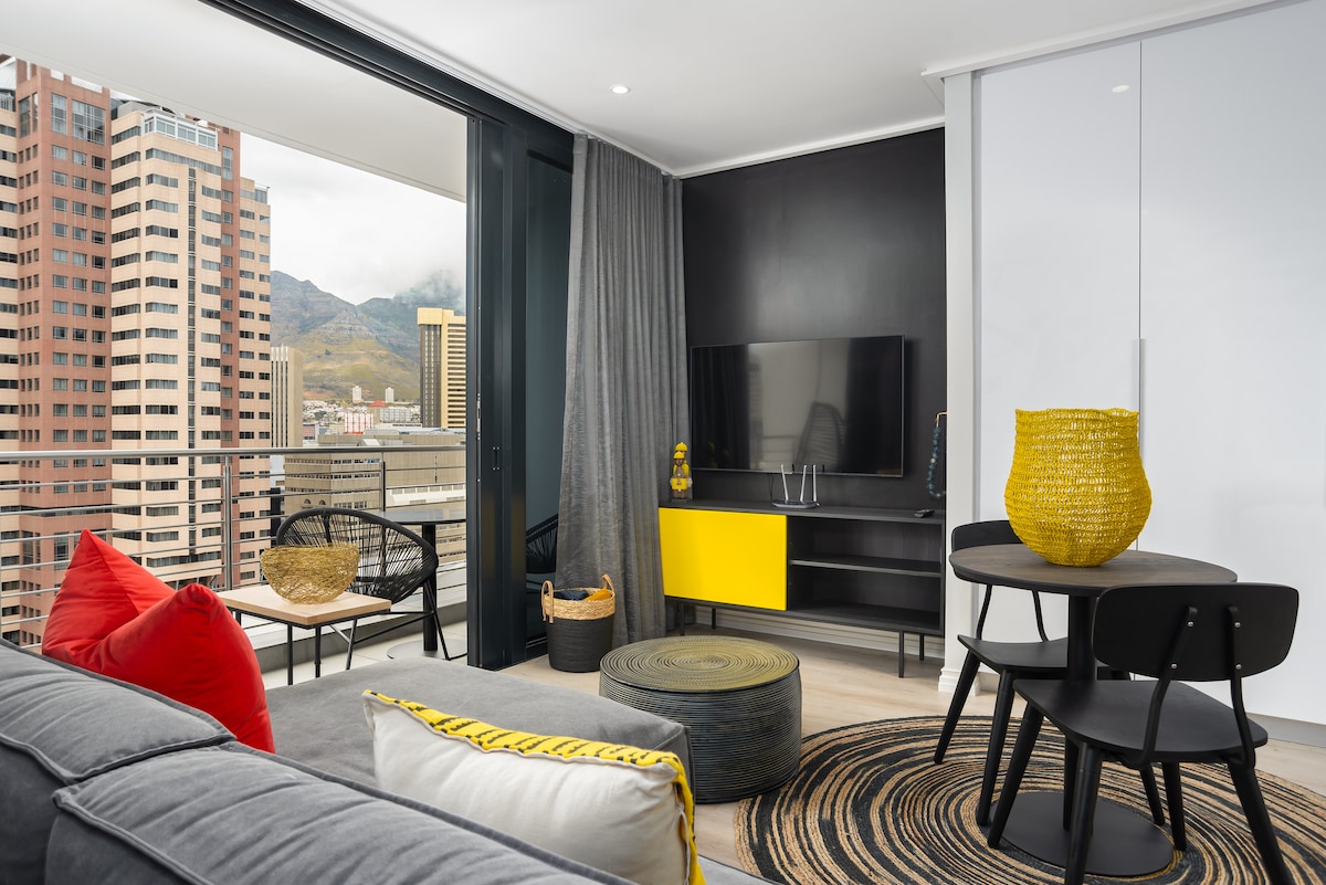 This apartment is a quiet haven of tranquility. Luxurious touches include a marble-topped dining table, quality bed linen, selection of books and artworks which set the space apart from so many hotel rooms out there. This spacious apartment offers everything - a stylish space, spectacular views, fast wifi, daily housekeeping, secure garage parking, Netflix, access to a gym and pool. 24/7 front desk and security means to accommodate late check ins. Beautifully decorated in a calming neutral palette. Text host directly to arrange access. Guests arriving after hours can collect key from 24hr concierge (by special arrangement.) Level of interaction is guest determined Located in the city centre, this is a vibrant area and the ideal place to base yourself to explore Cape Town's major attractions! The V&A Waterfront, Table Mountain, Clifton and Camps Bay beaches, CTICC, and Museums are all a short drive away. There are many restaurants, bars and coffee shops within walking distance. My City Bus transportation system. Taxi/Uber Free wifi, apartment is serviced