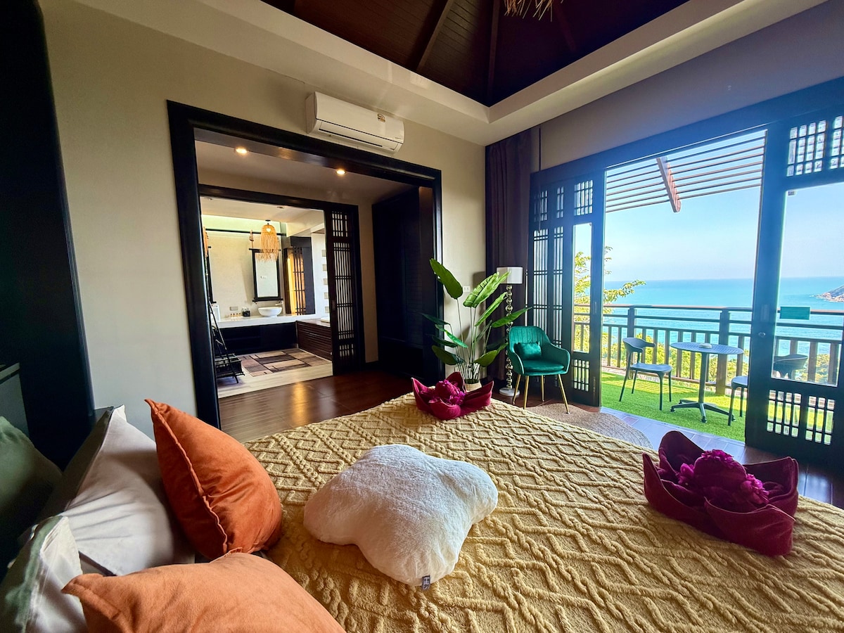 NEW ! PROFITEZ DU TARIF SPECIAL OUVERTURE ! 😀 La villa THE TERRACE, SUPERHOST AIRBNB⭐⭐⭐⭐⭐, est dotée de 2 grandes chambres en suites vue mer et d'une piscine à débordement privée ! Idéalement située sur la colline à Bophut, près du fameux Fisherman Village, sa TERRASSE OFFRE UNE VUE EXCEPTIONNELLE SURPLOMBANT LA MER ! Très moderne et lumineuse, la villa est parfaitement équipée et peut idéalement accueillir 1, 2 couples d'adultes ou une famille de 4 personnes. Petit déjeuner non inclus.