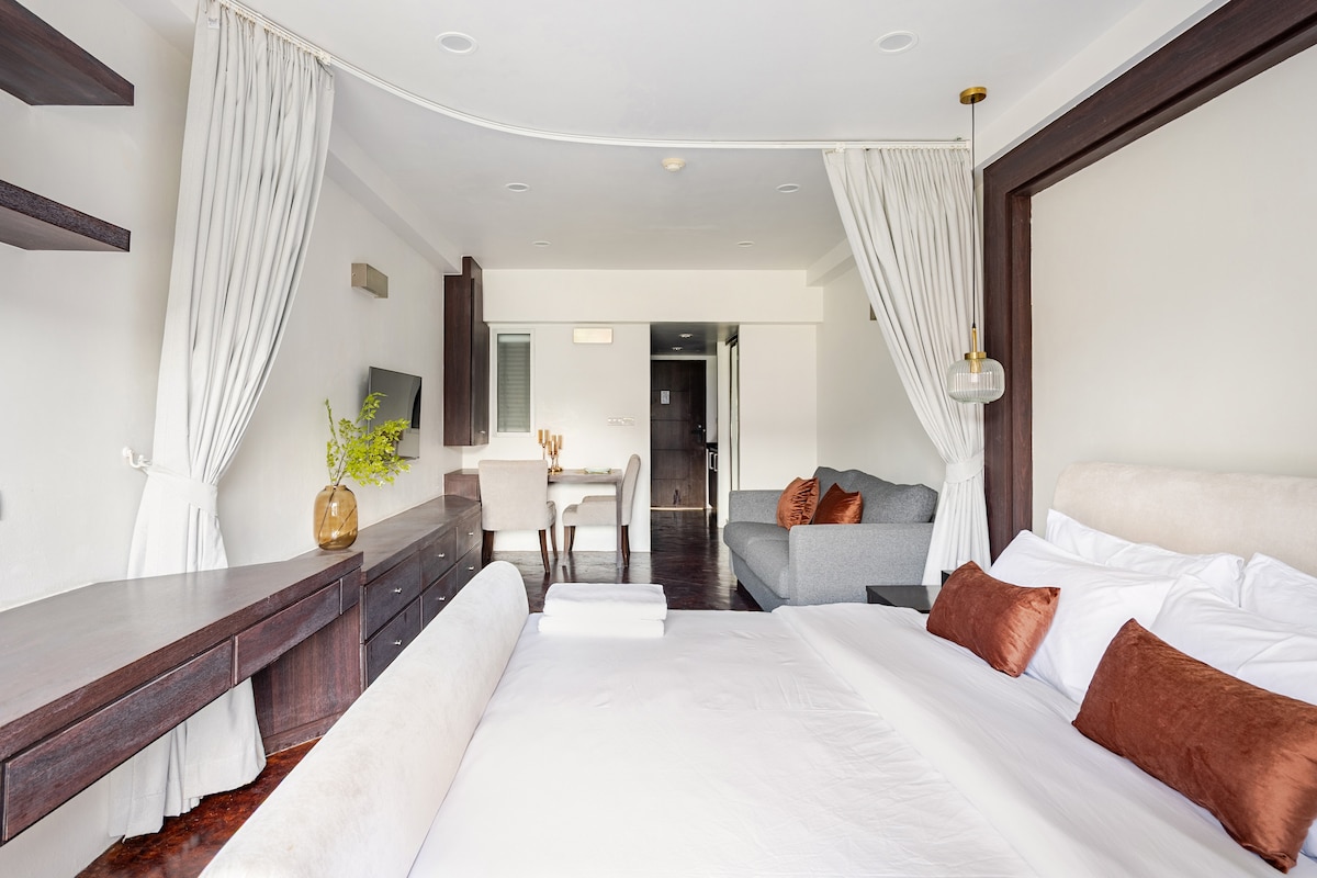 Modern studio with a massive king bed, Smart TV, and sleek micro-cement finishes. Everything is brand new. Enjoy pool, gym, sauna, steam room, and spa—all Replay condo amenities. Walking distance to the beach and Fisherman’s Village. Perfect for digital nomads or couples looking for comfort, style, and convenience in Koh Samui. Contact me direct for longer bookings and discounts ! IYKYK ;)