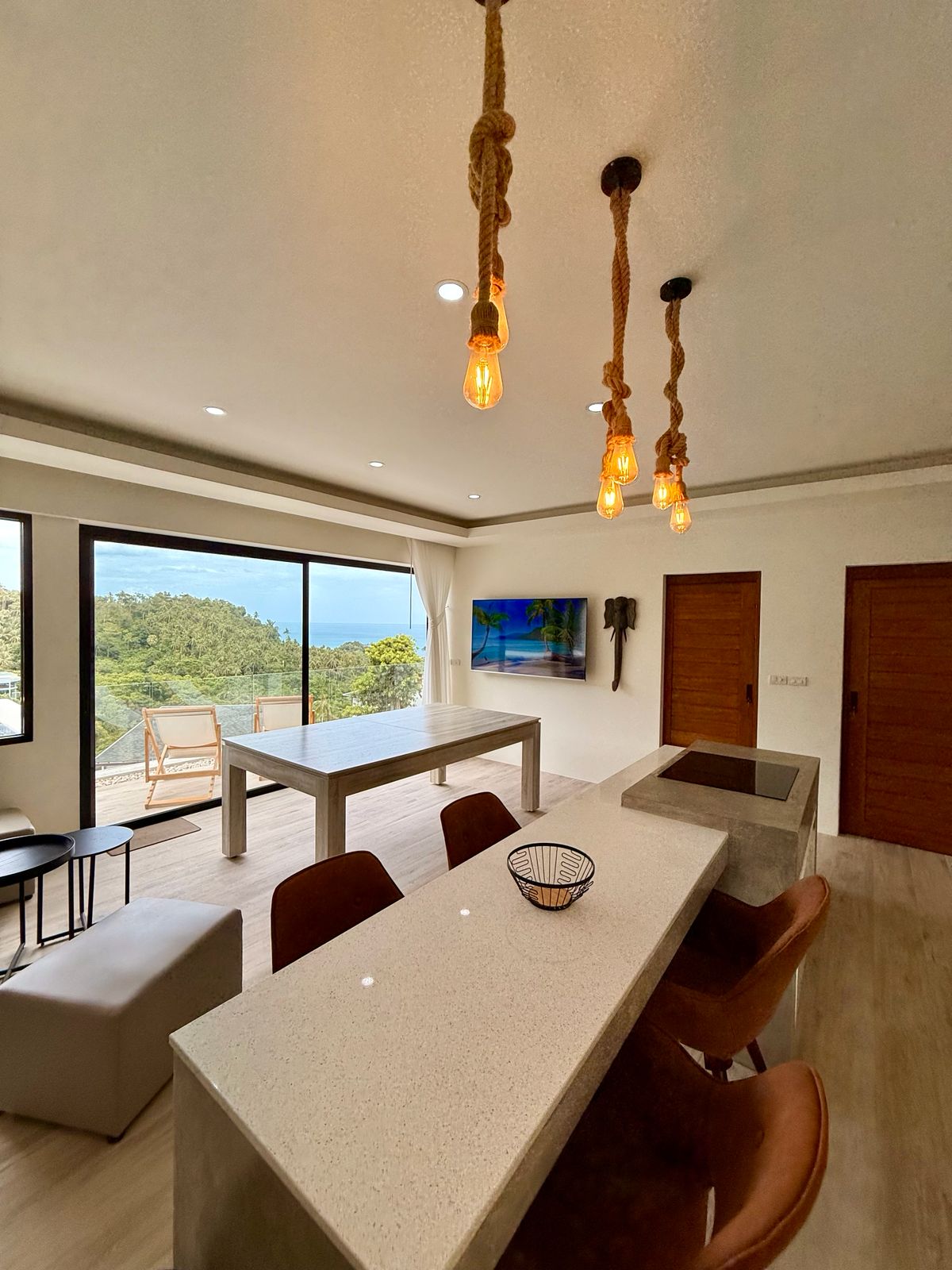 Welcome to Rêve Samui, where luxury meets island serenity. This modern 2-bed, 2-bath retreat offers panoramic ocean and archipelago views and sits a short stroll from Bang Por Beach. With stair-free access and an elevated vantage point, it blends privacy with convenience. Enjoy sunrise and sunset from your deck and unwind in elegant comfort—perfect for couples, families, or long-stay guests.