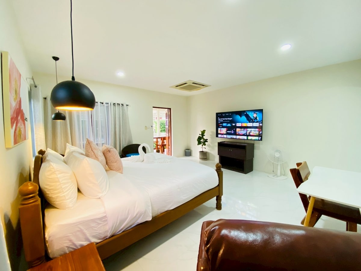 I have this modern apartment for rent, just meters from the beach. Comfortable apartment with own bathroom, free good wifi (3BB fibre). All utilities included. Including: hot water shower, cooker (stove), hot water kettle, microwave, utensils, air condition, bed sheets, towels. Shops and restaurants in walking distance. I am looking forward to welcoming you here.
