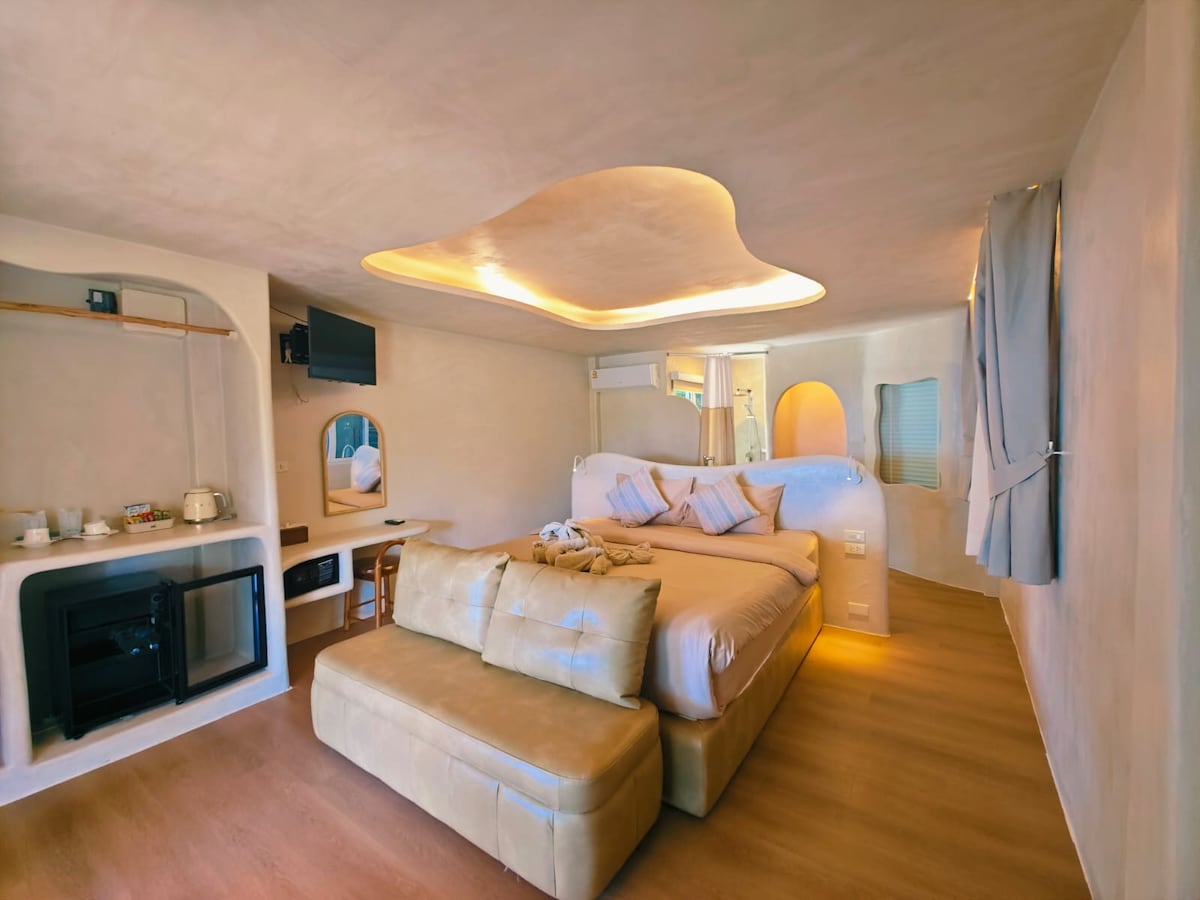 This tiny room for island explorers is a part of Dreamcatcher boutique hotel and is located in heart of Samui's famous Fisherman's village. Super close to Bophut beach (1 minute walk), close to plenty of restaurants, 3 minute walk from the popular Fisheman's village night market! Unique design, all necessary facilities and super comfy mattress will make your stay great! However, if you just like to spend most of your time in the room , this one is probably not the one for you due to its size)