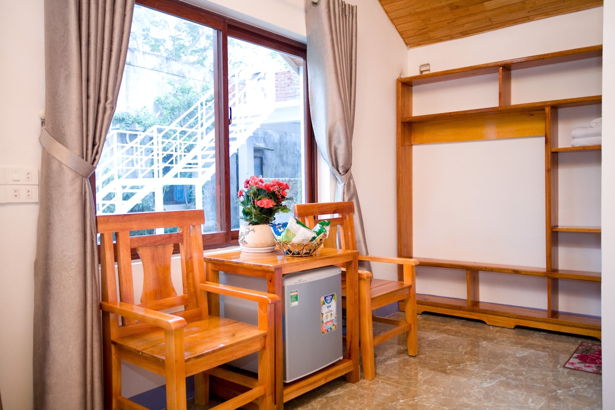 Welcome to Our Guest Favorite Room! Our cozy double room with breathtaking mountain views is a top choice among guests. With its warm atmosphere, comfortable bed, and private bathroom, it’s ideal for couples or solo travelers seeking both comfort and charm. The large windows bring in plenty of natural light, making it a perfect spot to wake up with the beauty of Phong Nha right outside. After exploring caves and rice fields, unwind by the pool or simply enjoy the peaceful garden setting.