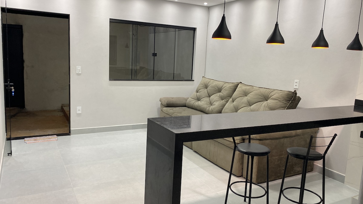 Hospede-se com toda a família e amigos nesta acomodação espaçosa e estilosa com ótima localização, vista panorâmica e estrutura para que sua estadia seja memorável. A 150m de supermercado, farmácia e zona comercial, a casa conta com duas salas de estar, dois banheiros, dois sofás-cama, dois refrigeradores, cafeteira, sacada, copa, cozinha, churrasqueira a bafo e lavanderia.