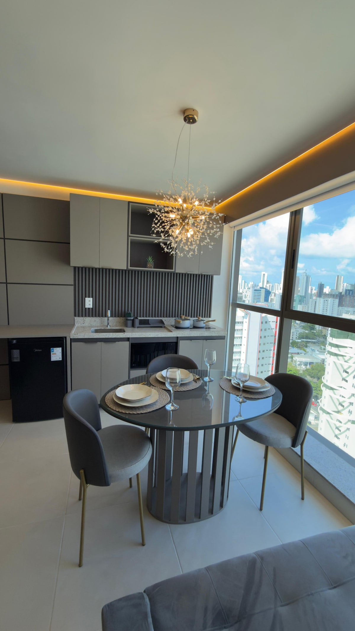 Studio completo com vista mar em Boa Viagem ✨✨ No Ed. Praia da Gameleira, a 500m das piscinas naturais e perto do aeroporto, restaurantes e pontos centrais. O apto oferece ar-condicionado, Wi-Fi rápido, enxoval de qualidade, cozinha com fogão por indução, micro-ondas e utensílios completos, além de secador de cabelo. O condomínio tem rooftop com piscina, academia, coworking, salão gourmet, tomada p/ carro elétrico e portaria 24h.