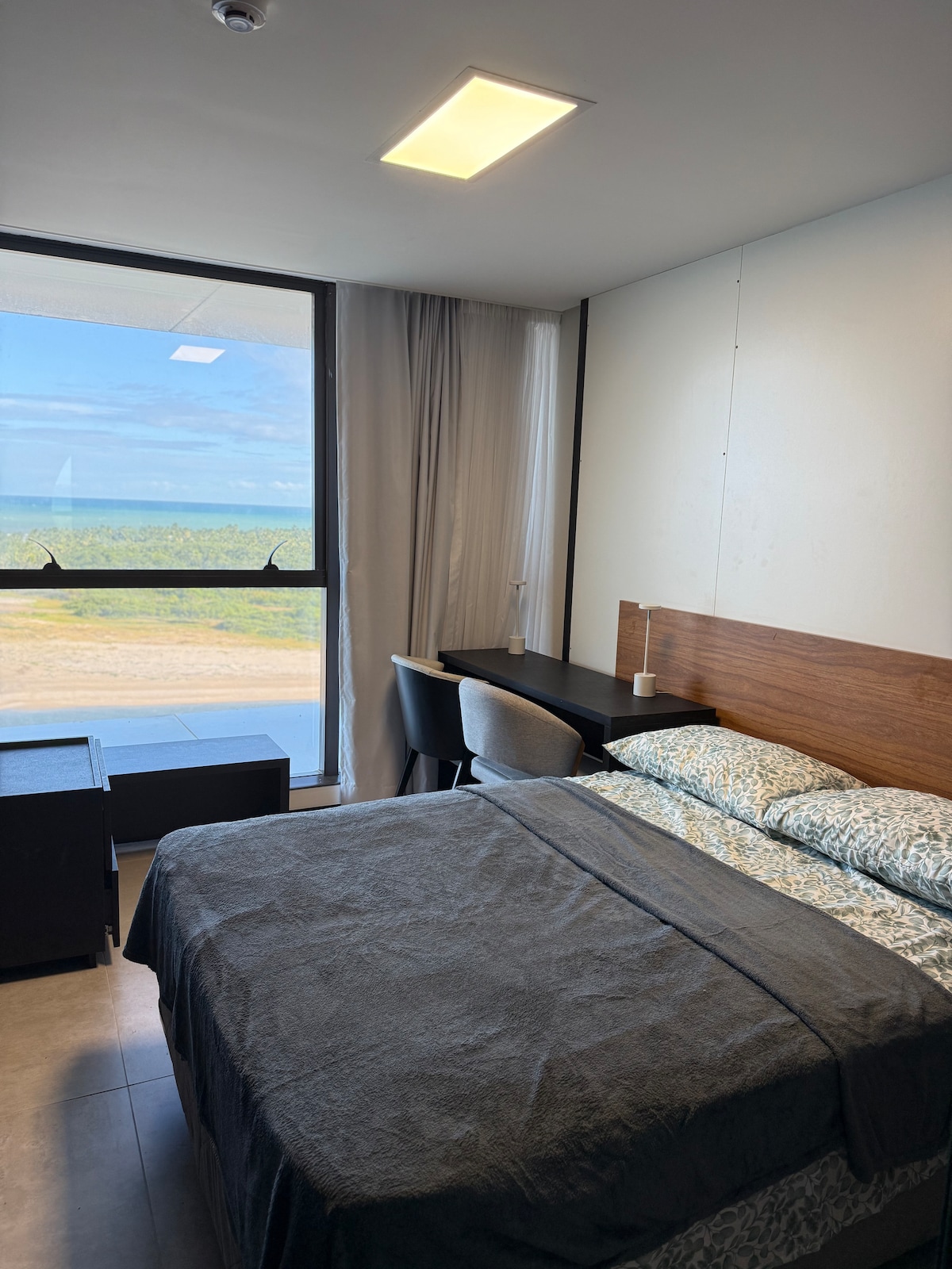🌅 Vista Deslumbrante! 21º Andar, de frente para o mar! 🌊 🍽️ Cozinha completa ❄️ Ar-condicionado 🛁 Jacuzzi | 🏊♀️ Piscina | 🍖 Churrasqueira 🚗 Garagem | 🏋️ Academia | 🎯 Salão de jogos 🧺 Serviço de lavanderia disponível 🥐 Café da Manhã opcional – R$ 20,00 por pessoa! ✨ Elegância e serenidade definem o Flat JASPE. Tons de cinza e texturas suaves, inspirados na pedra preciosa 💎, criam um ambiente sofisticado e relaxante para sua estadia!