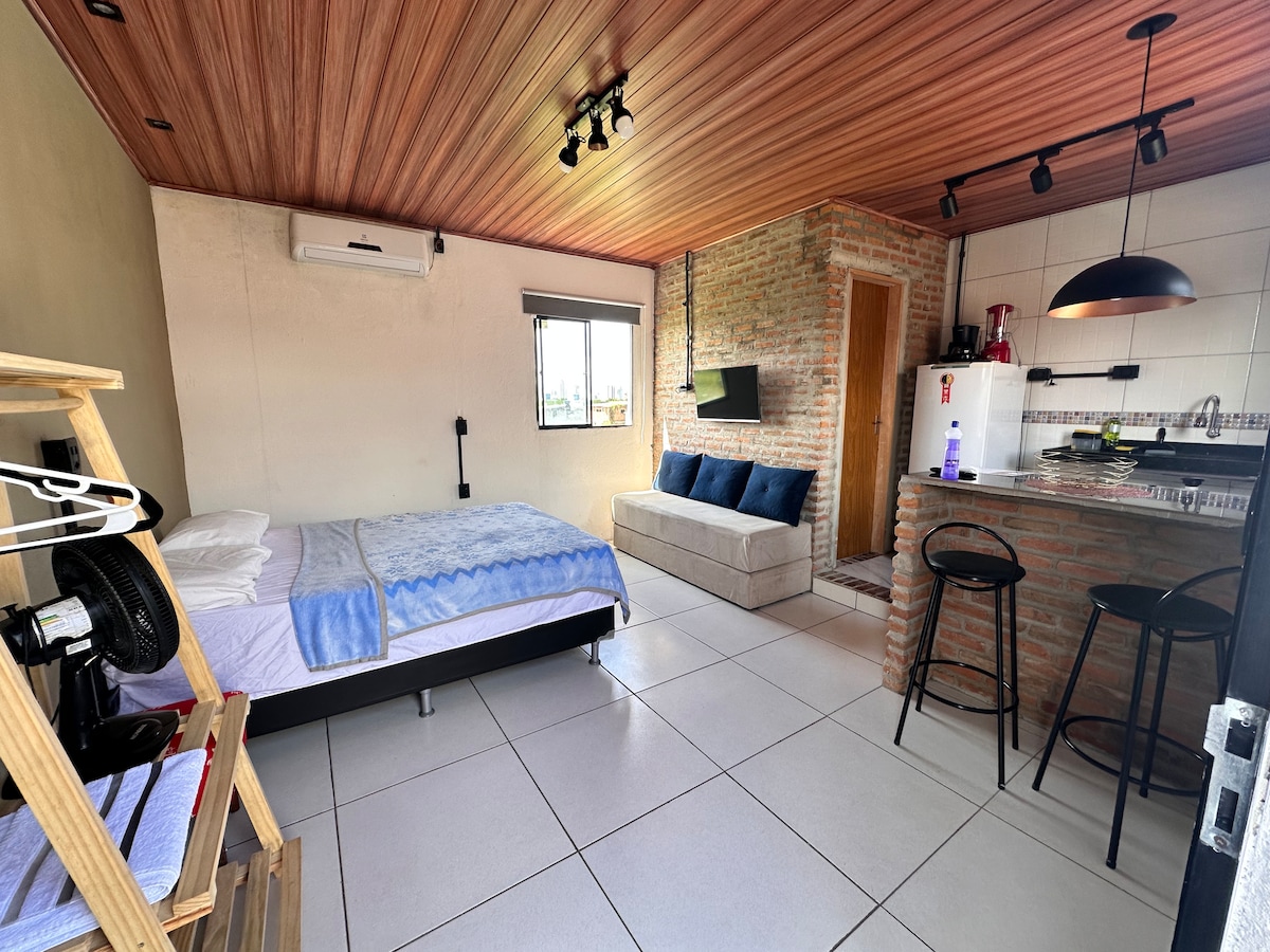 Studio confortável e bem decorado num prédio com estrutura excelente e muito bem localizado no bairro de Boa Viagem. O prédio é excepcional com destaque para o Rooftop que é de tirar o fôlego com piscina aquecida e hidromassagem. Ainda conta com academia, lavanderia inteligente, mini mercado, recepção 24h, coworking, guarda volumes e garagem. Próximo à praia (8min de caminhada), ao aeroporto (10min de carro), de padarias, supermercados, restaurantes, salões de beleza, barzinhos e farmácias.