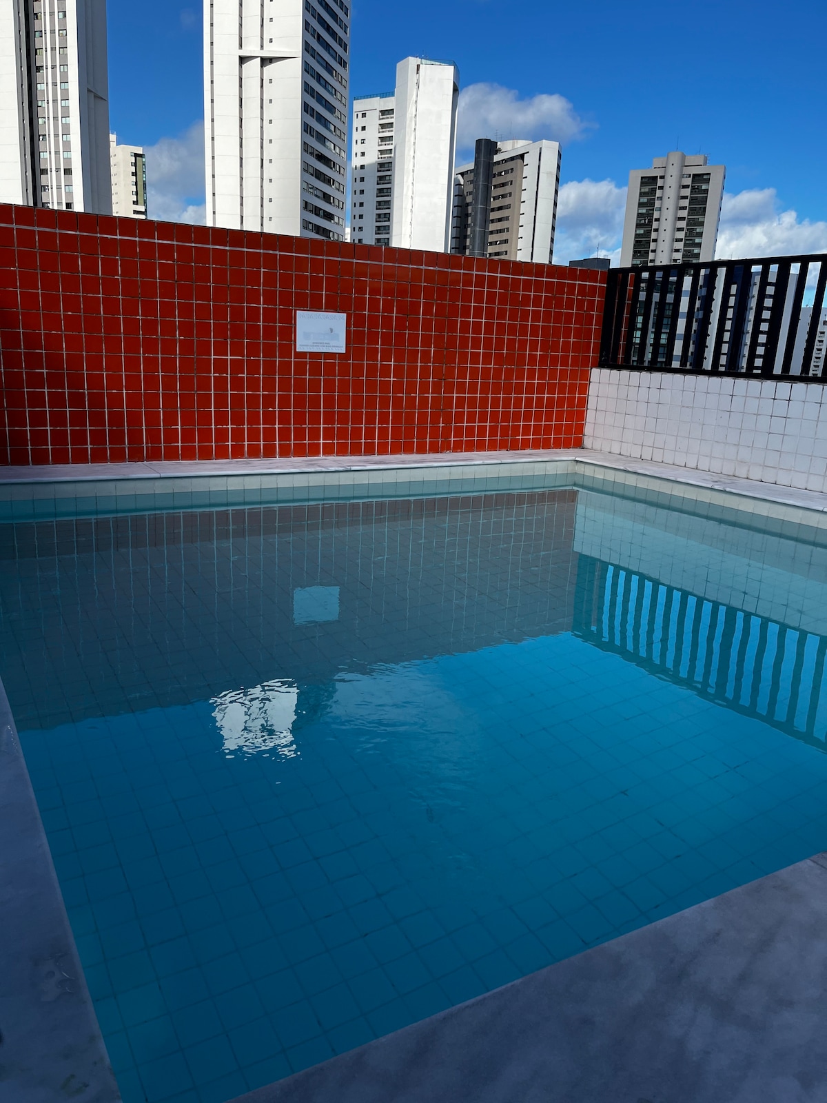 Flat/estúdio, confortável para 2 ou 4 pessoas, pois tem uma cama e um sofá cama. Cozinha equipada para dia a dia, com utensílios, cooktop e microondas. Material de cama e banho. Perto da praia e do Shopping Recife. Vários comércios próximo, Farmácia, padaria, restaurantes etc. Com garagem para um veiculo. Smart TV, ar split, móveis planejados e piscina na cobertura com uma vista linda. Tentamos fazer o melhor para nossos hóspedes, aprendendo e melhorando com cada pessoa que se hospeda conosco.
