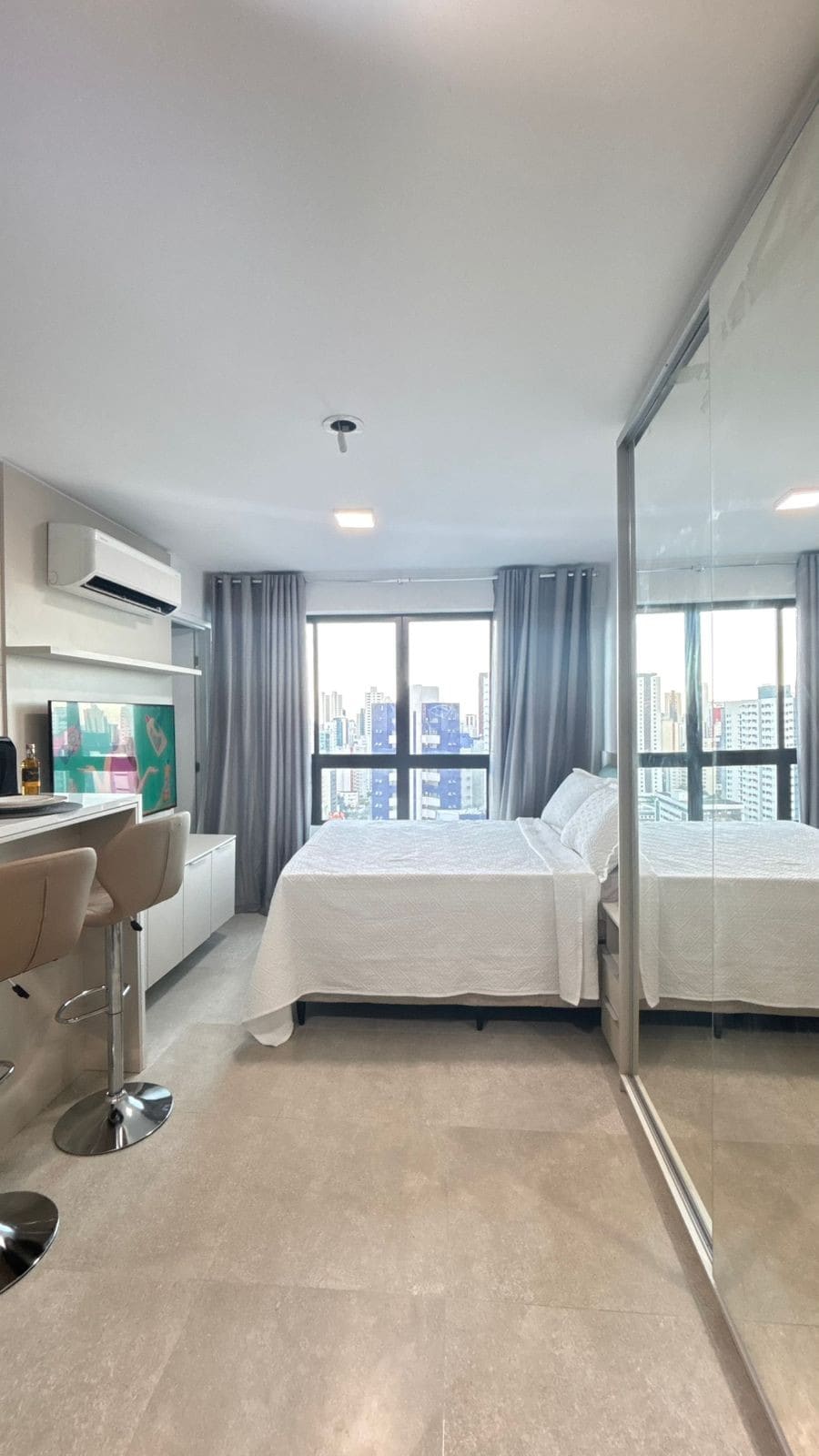 ⭐️⭐️⭐️⭐️⭐️ Bem-vindo ao Seu Lar em Boa Viagem! Excelente Localização, Studio completo, com cama de casal e sofá-cama, ar-cond Split, Smart TV, Wi-Fi, mesa de trabalho e de jantar, cozinha completa com cooktop, micro-ondas e utensílios, armário, espelho, móveis planejados, roupa de cama e banho. Recepção 24h, garagem, piscina, sauna, academia e mercadinho. Localização privilegiada: Shopping Recife (5 min a pé), praia (10 min a pé) e hipermercado em frente. Reserve agora e viva a experiência!
